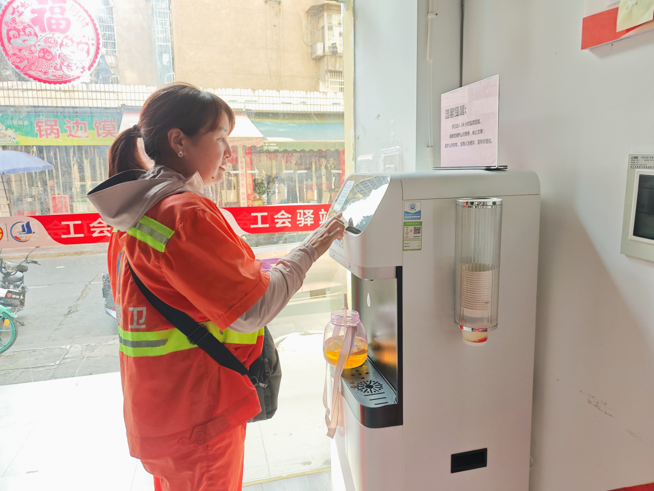 对于户外劳动者来说,这些爱心驿站就是身边的“补给站”和“避风港”。在车水马龙的主要街道,环卫工人、交通协管员累了,能随时走进驿站歇脚;在订单不断的商圈,外卖骑手、快递员可在此短暂休整;在人来人往的交通枢纽周边,跑运输的司机等也能找到一处清凉角落。