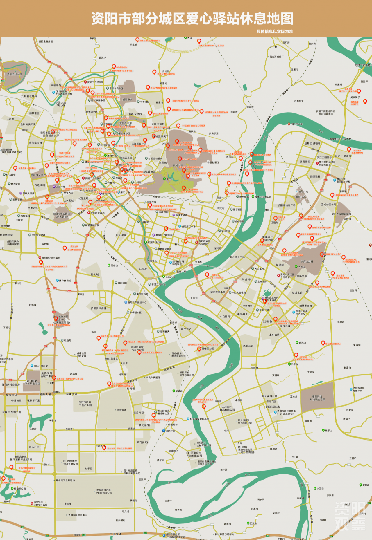 资阳城区爱心驿站分布示意图。