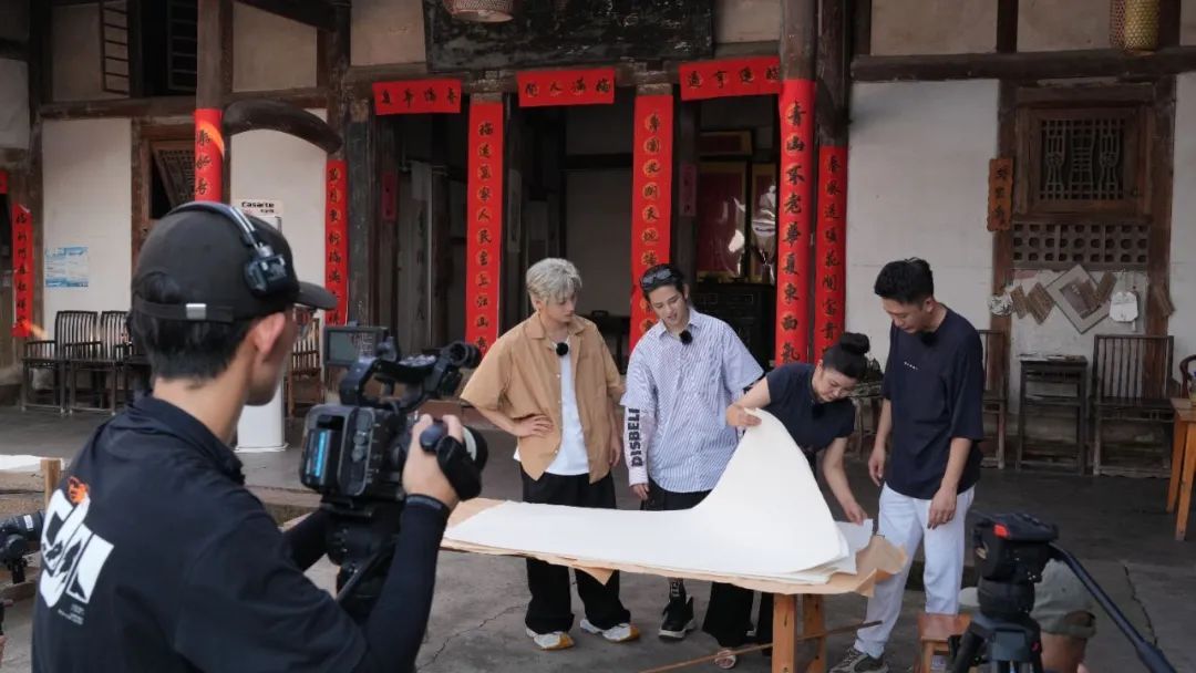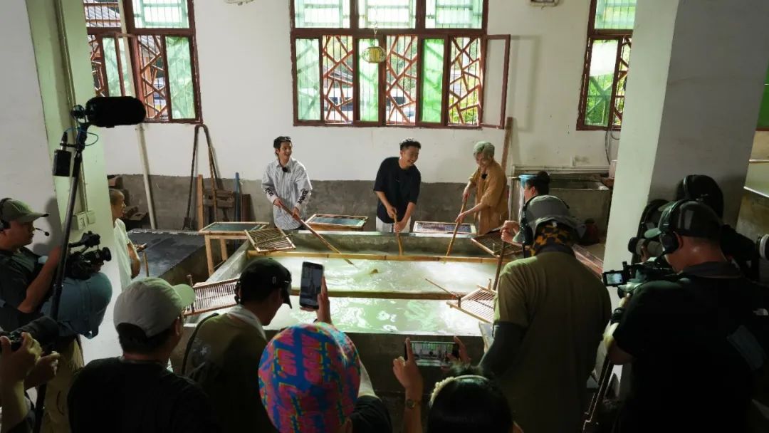 录制现场,央视著名节目主持人杨帆与嘉宾符龙飞、李振宁一道,走进夹江县马村镇状元纸坊,采用“嘉宾讲解+沉浸体验”的方式,与非遗传承人互动交流,探秘纸文化,详细了解非物质文化遗产夹江竹纸制作技艺的保护与传承、研学旅游发展成功经验和工作成效,深入挖掘夹江非遗、文旅特色。