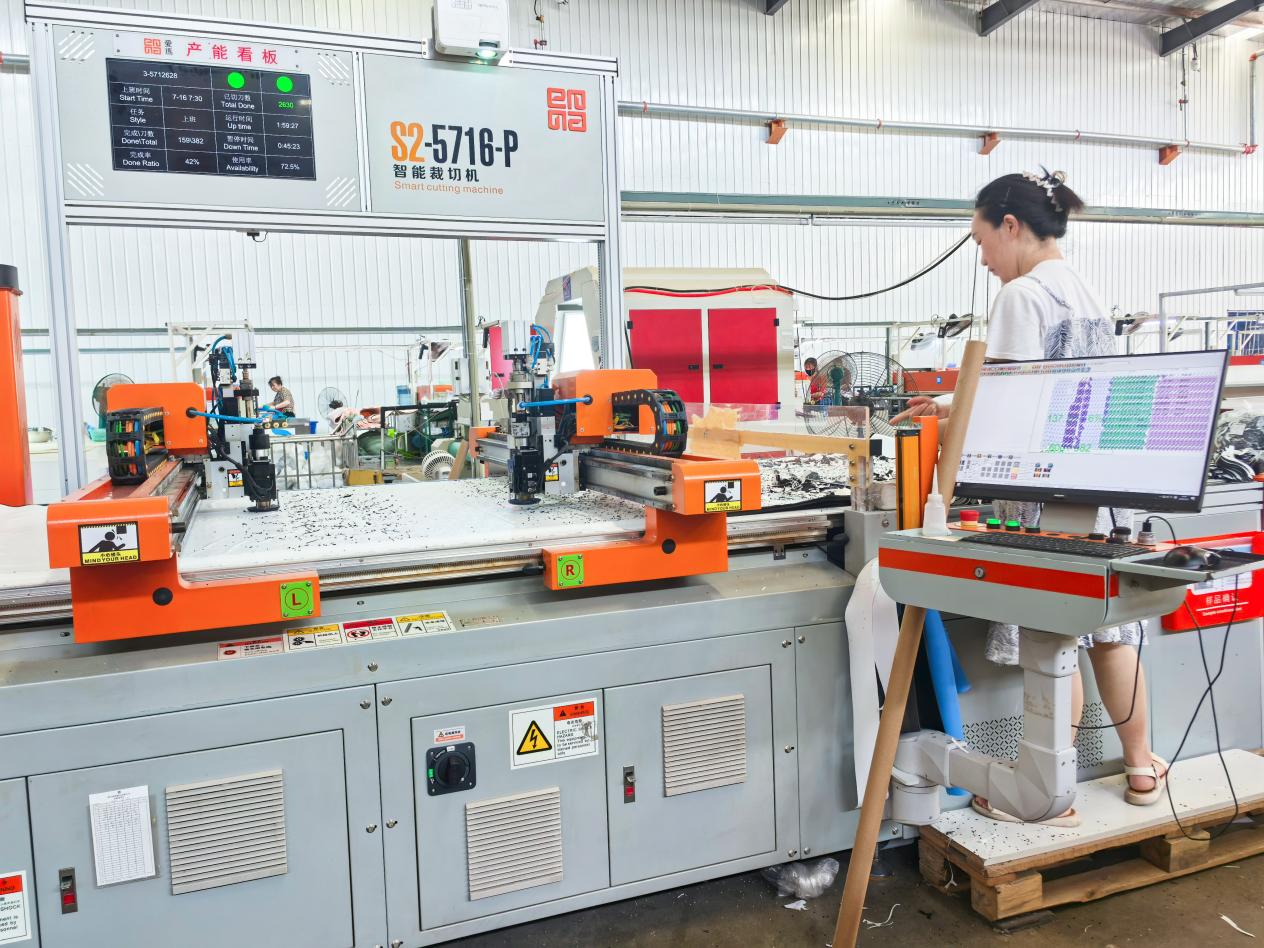 车间内,每条生产线顶端的电子屏实时跳动着生产数据。“朗特鞋业是全县首个应用数字化智能管理MES系统的鞋企,该系统对原料采购、生产调度、质量检测等环节实现采集追踪,做到了人、机、物、事、钱、信息的全链路实时互通,构建起了数字化生产闭环,实现了生产快速高效。”陈代全指着电子屏介绍道。