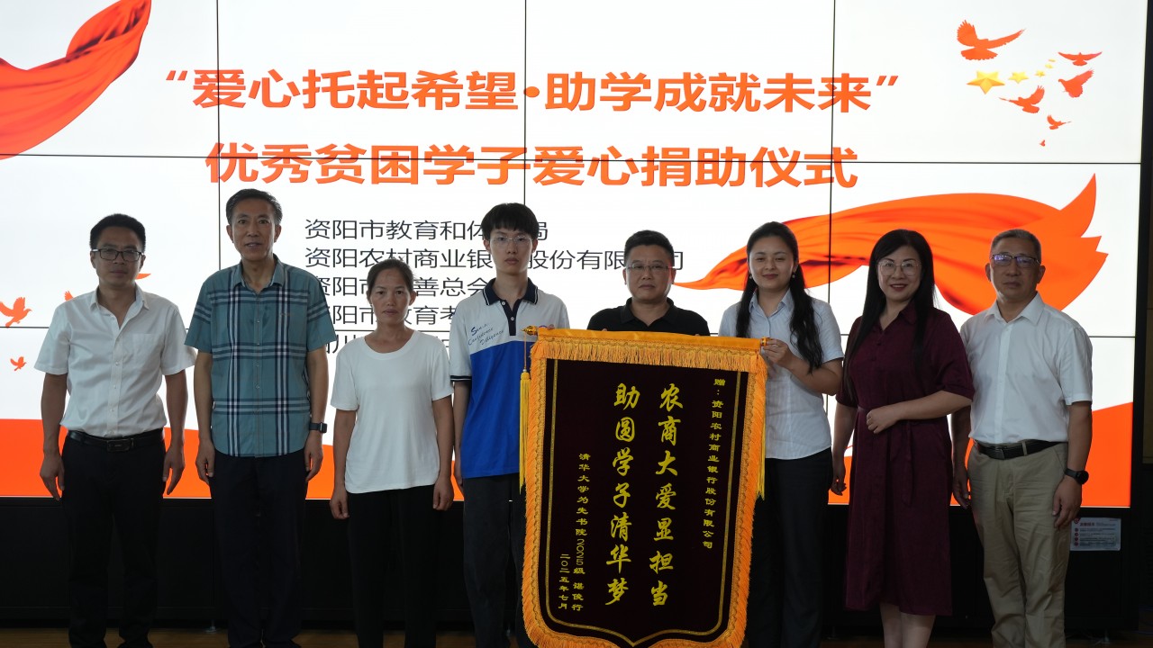 7月31日,“爱心托起希望·助学成就未来”优秀贫困学子捐助仪式在资阳中学举行。活动现场,爱心企业向即将踏入清华大学的资阳中学优秀学子谌俊行送上8万元助学金,为他的求学之路保驾护航。