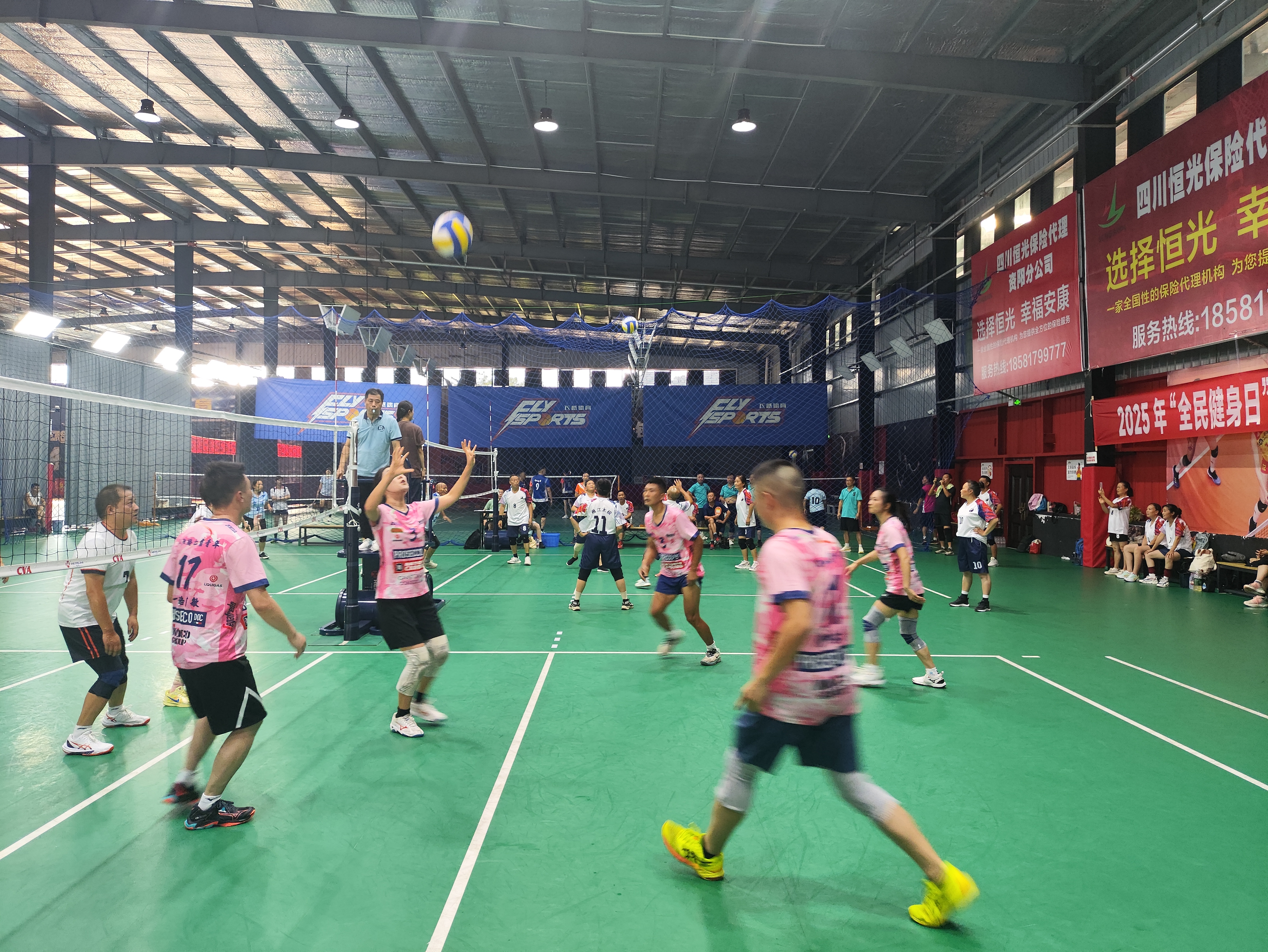 开幕当天的首场比赛在1号场地打响,青年混合A组的小虎青年队对阵雁江分会二队,双方迅速进入状态,传接配合流畅,鱼跃救球、强力扣杀频频上演,赢得现场观众阵阵喝彩。