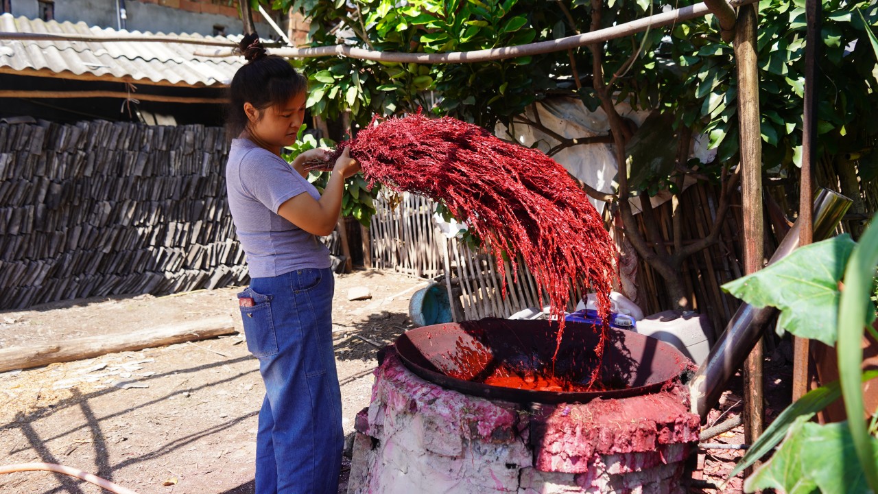 创业之初他们可没少闹笑话。染色比例掌握不好,整批材料变成“废品”;造型缺乏新意,订单少得可怜。何花带着样品跑遍周边花店,李新国则在网上看教程学网上销售,最终他们摸索出一套最优工艺:本地野草保留原生态,外来材料侧重染色创新,捆绑时讲究“疏影横斜”的层次感。
