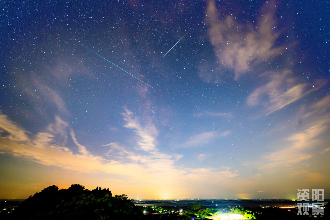 8月12日晚,在雁江区巍峰山拍摄的英仙座流星雨。