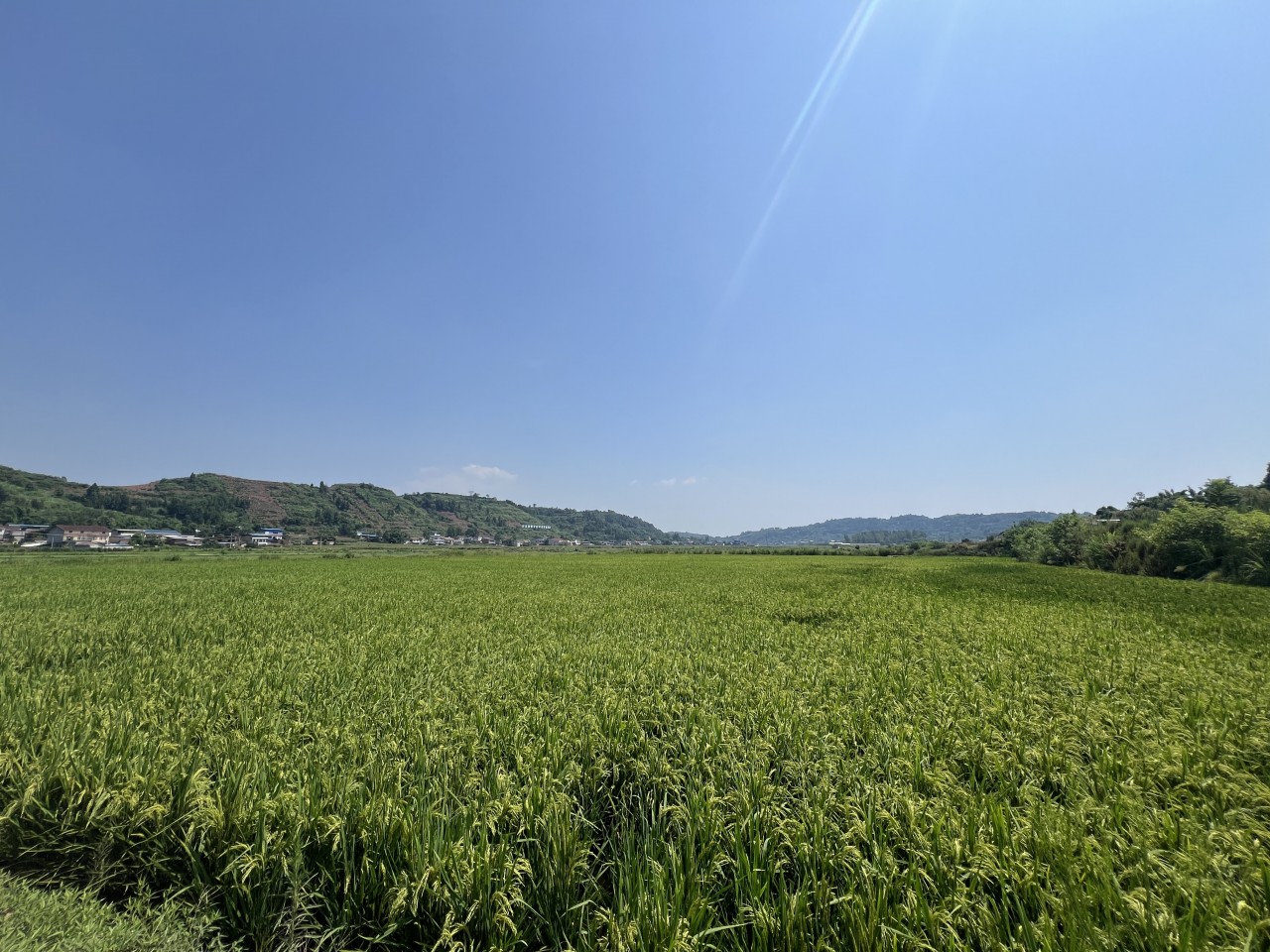 马蹄湾园区长势良好的水稻。