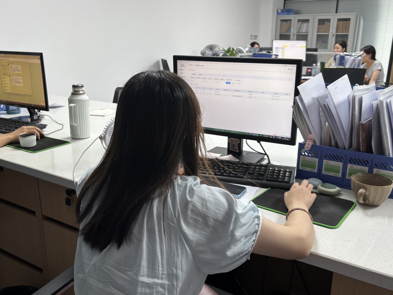 外包拓展部的工作人员正在筛选简历。