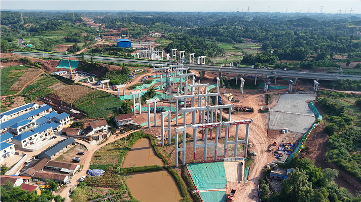目前,中和枢纽桩基施工完成97%,墩柱完成28%。按计划,2025年将完成所有桩基及405根墩柱、155个盖梁等施工。