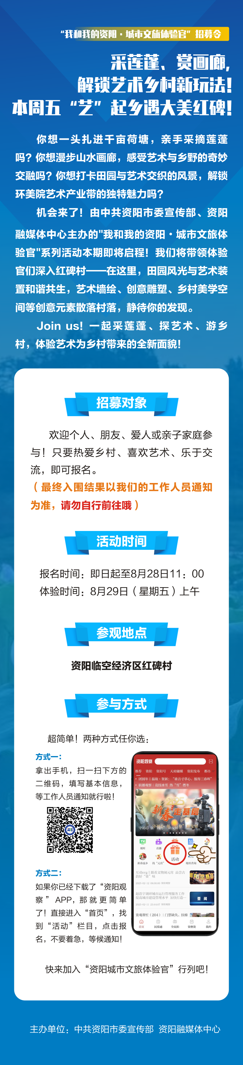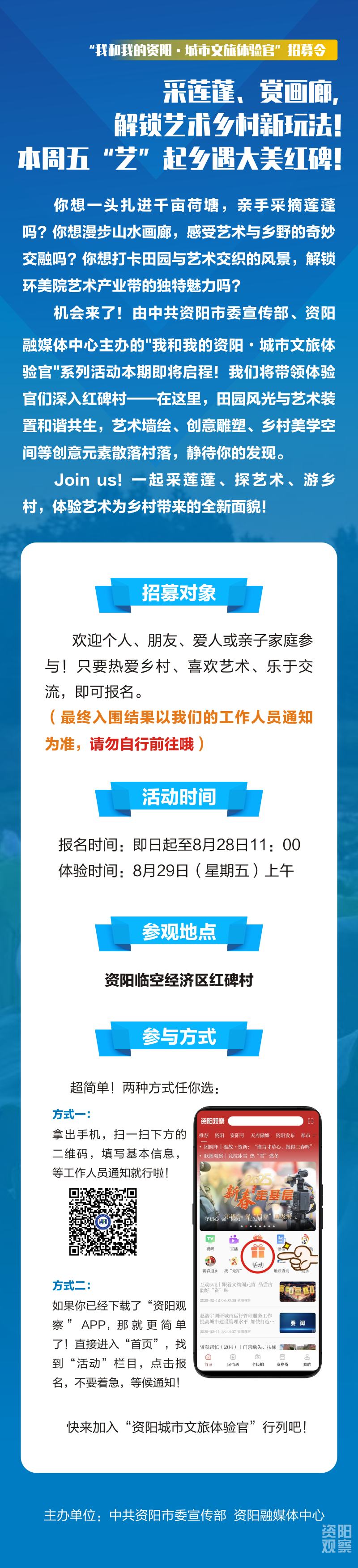 如果你已下载“资阳观察” APP,直接进入“首页”,找到“活动”栏目,点击报名即可,静候通知!