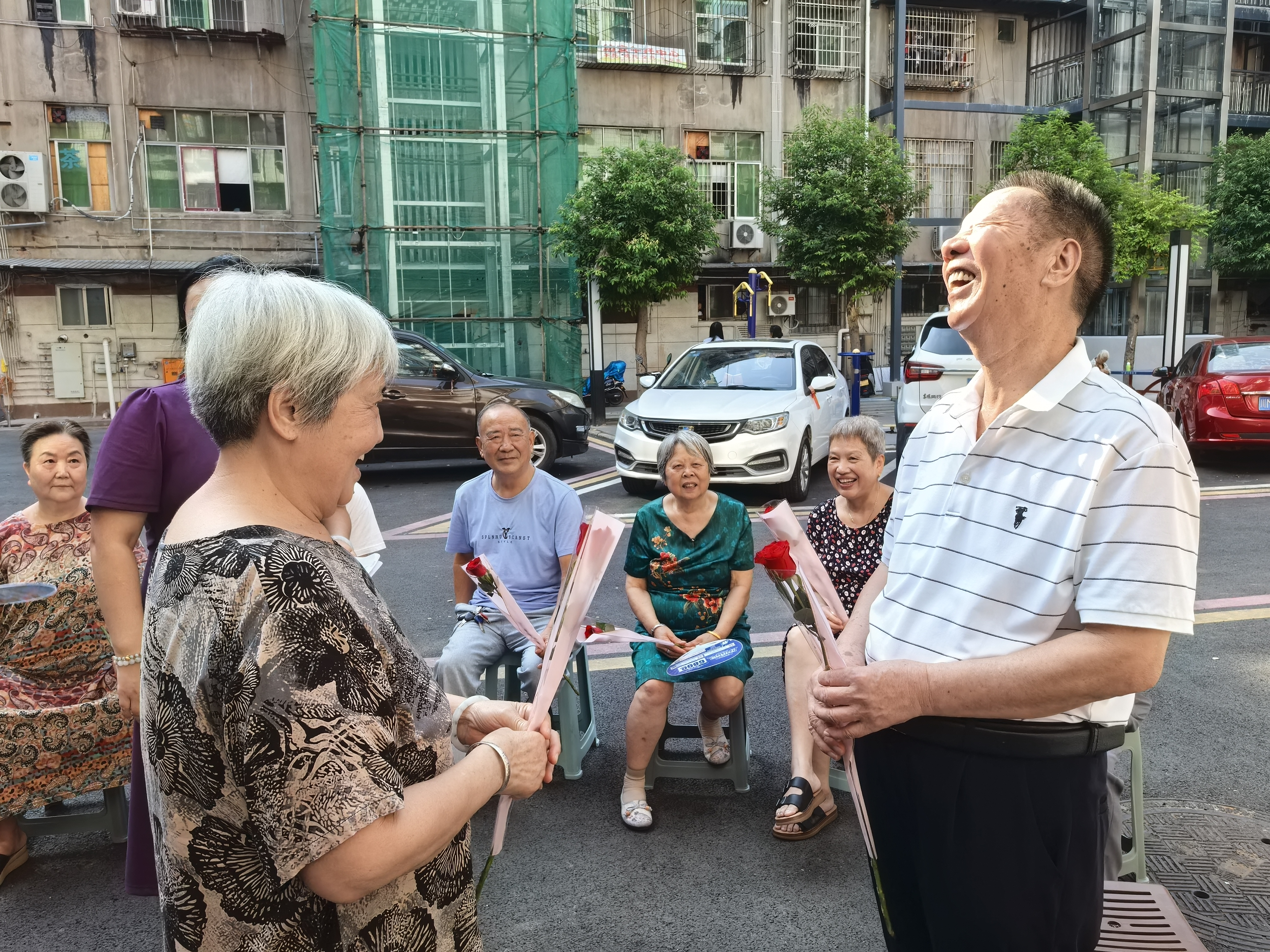 将整场活动推向高潮的是“鲜花表意”环节。丈夫们将准备好的鲜红玫瑰献给妻子,并以一个深深的拥抱,表达多年来的感激与陪伴。七十多岁的王大爷紧紧抱住老伴,轻声说:“一辈子谢谢你。”没有华丽的辞藻,却让在场多位观众动容。社区工作人员表示:“希望用这样的方式,让爱不被岁月掩盖。”
