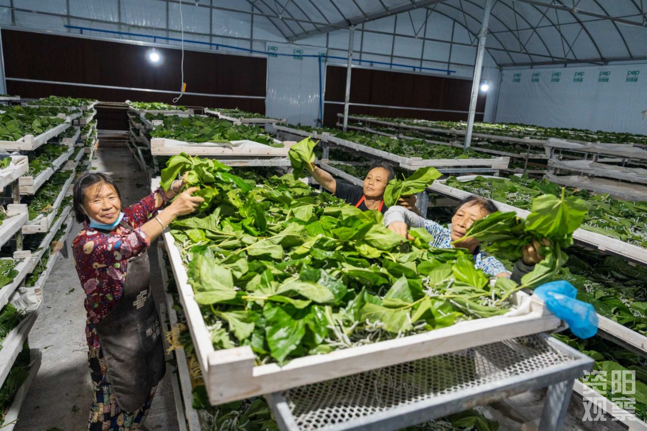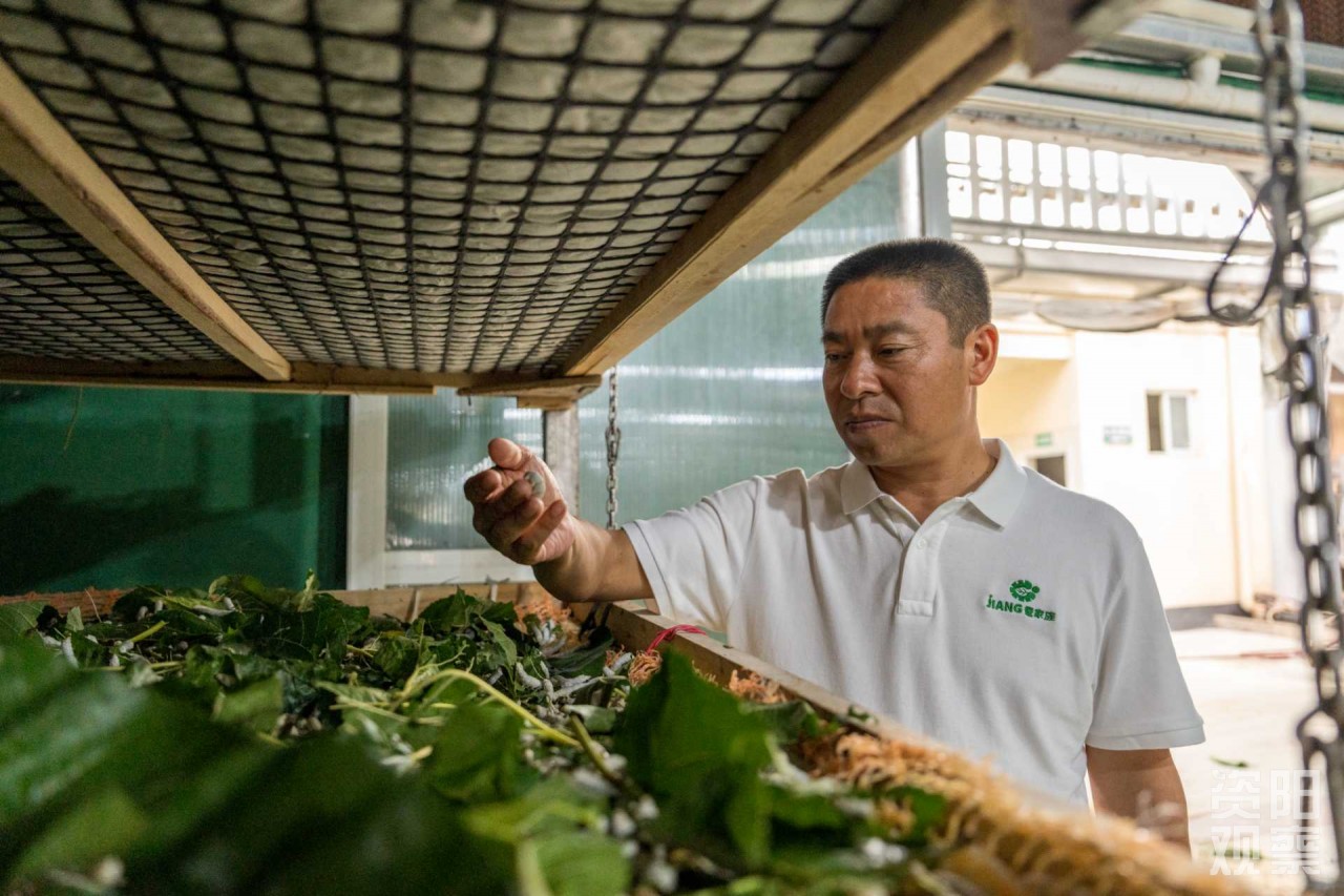 在僵蚕产业园里,不少像蒲玉琼这样的老年村民也找到了“新工作”:“我这年纪出去打工没人要,种庄稼累得腰直不起来。现在在蚕房喂蚕、摘桑叶,每月能拿3200多元,很不错了!”