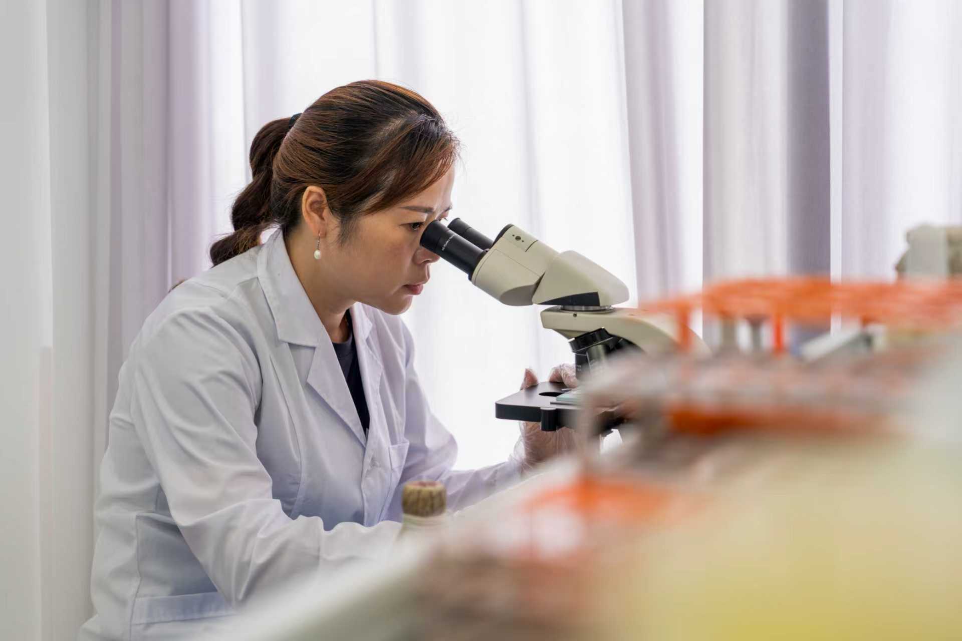技术人员正在观察白僵菌生长情况。