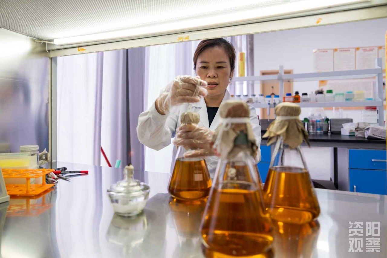 拥有“优菌”后,更关键的是“驯菌”。在乐至僵蚕产业园的制菌车间里,科研人员正通过显微镜仔细观察白僵菌的生长状态,一旁的摇床上,多个菌瓶匀速运转,培育着新鲜菌液。