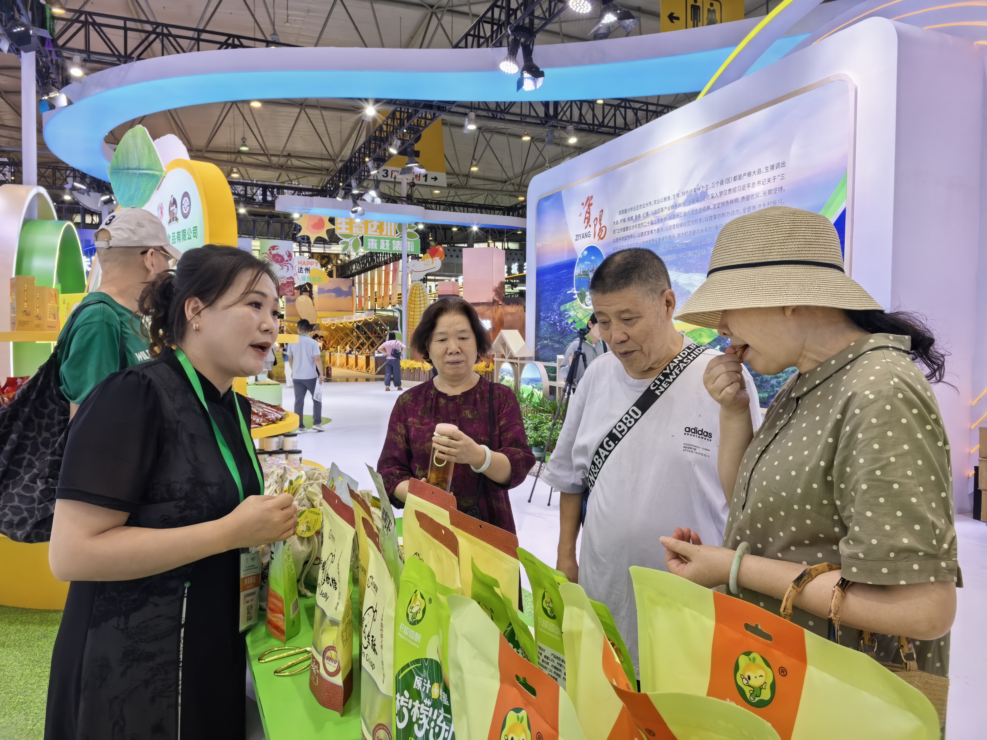 资阳展馆位于会展中心2号馆内,展位面积800平方米,展区围绕“成渝之心 巴蜀门户”定位,以“聚力建圈强链 创响资味品牌”为主题,总体布局以体现资阳农业发展新成效为主线。共有来自全市各县(区)20余家企业、新型农业经营主体的230余种“资味·资产”农产品亮相。