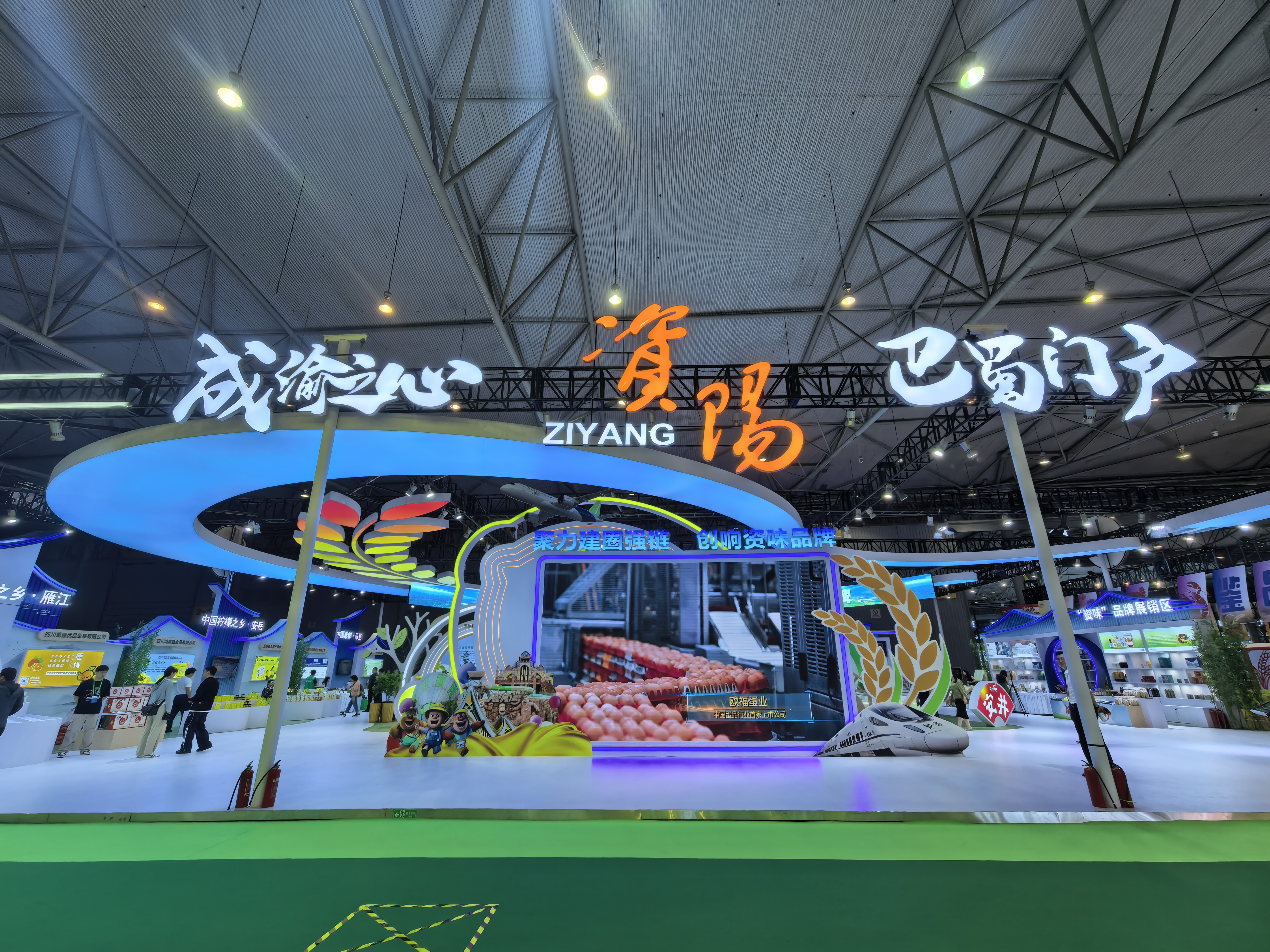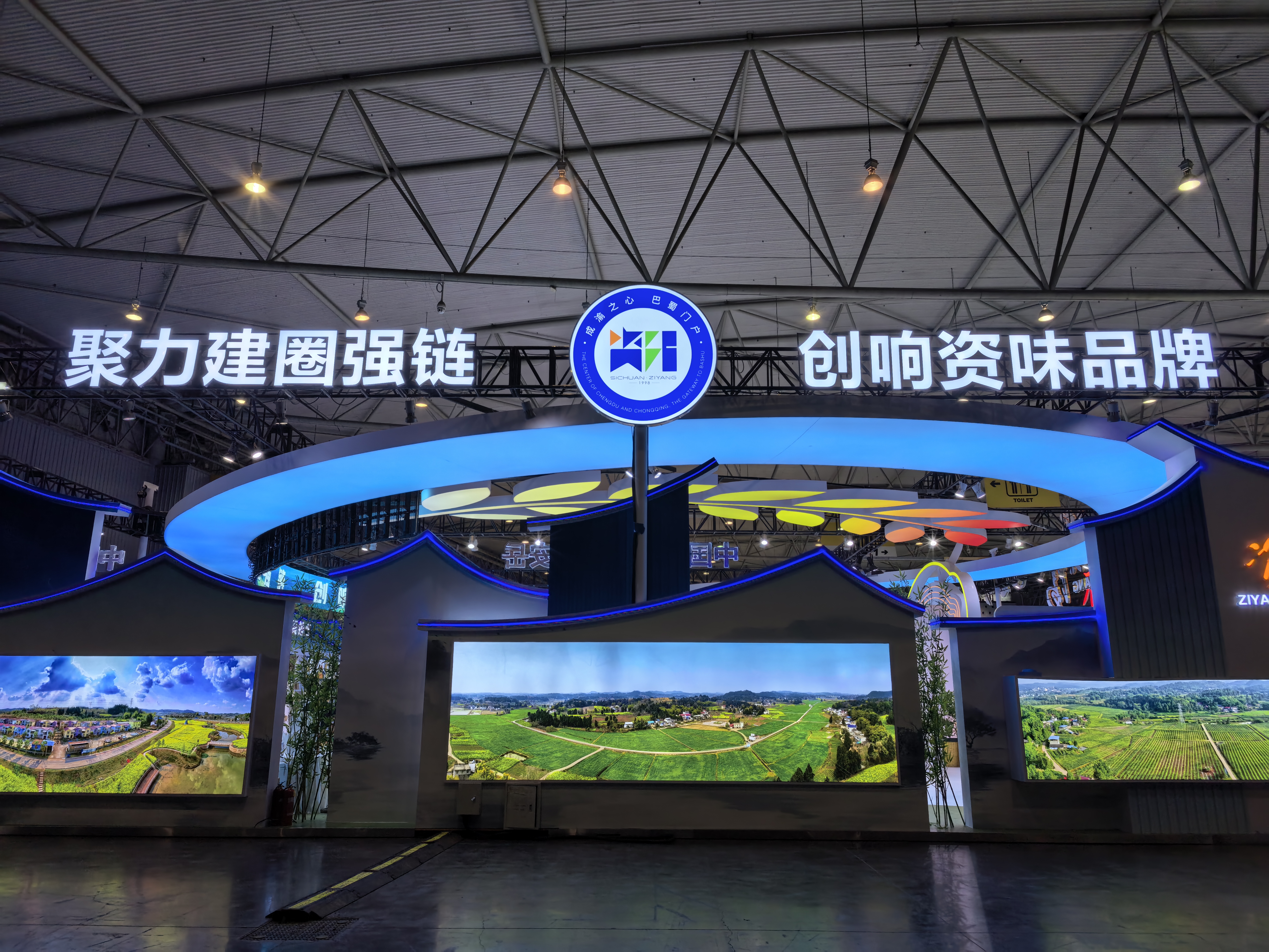 其中主题门头展示区通过展厅门头、门套及主体架构设计,突出资阳标志性元素,体现资阳城市形象标识。搭建的乡村振兴展示区域,通过视频、图片、文字等载体,充分展现资阳农业发展的新成效、新变化。