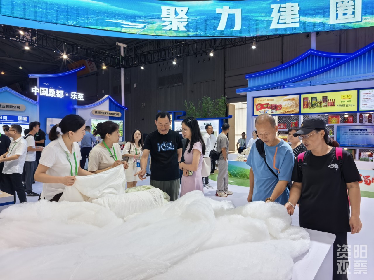 资阳展馆设有主题门头展示区、建圈强链展销区、新质生产力展销区、“天府粮仓”资阳示范区、“资味”品牌展销区五个空间区,重点展销“一县一特”特色农产品、特色优势精深加工农产品、绿色有机农产品、中国地理保护标识产品和数字农业等新技术,现场还设有电子商务区可以开展直播带货。