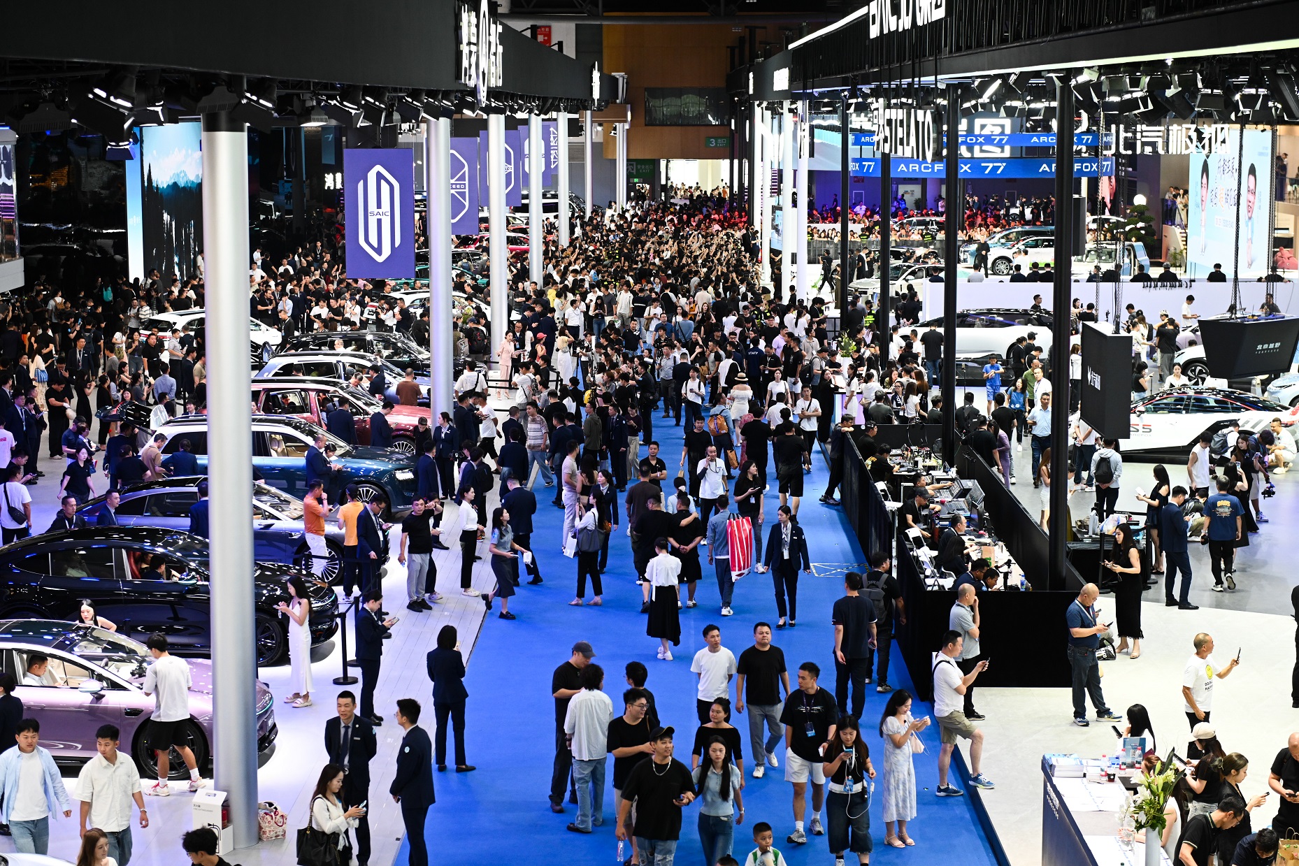 开幕正逢七夕佳节,车展首推特别打卡活动,连续十天为新人及观众送上甜蜜福利;同期还上线首届宠物公益活动。展馆内,冰饮狂欢节、小红书“车生活”Will On Wheel、一站式试乘试驾、百事可乐“燃动一夏”带来多元跨界体验;移步室外,极速声浪汽车文化嘉年华、运动赛事、工厂研学、人车宠共生等特色展城活动,更是点燃全城激情。
