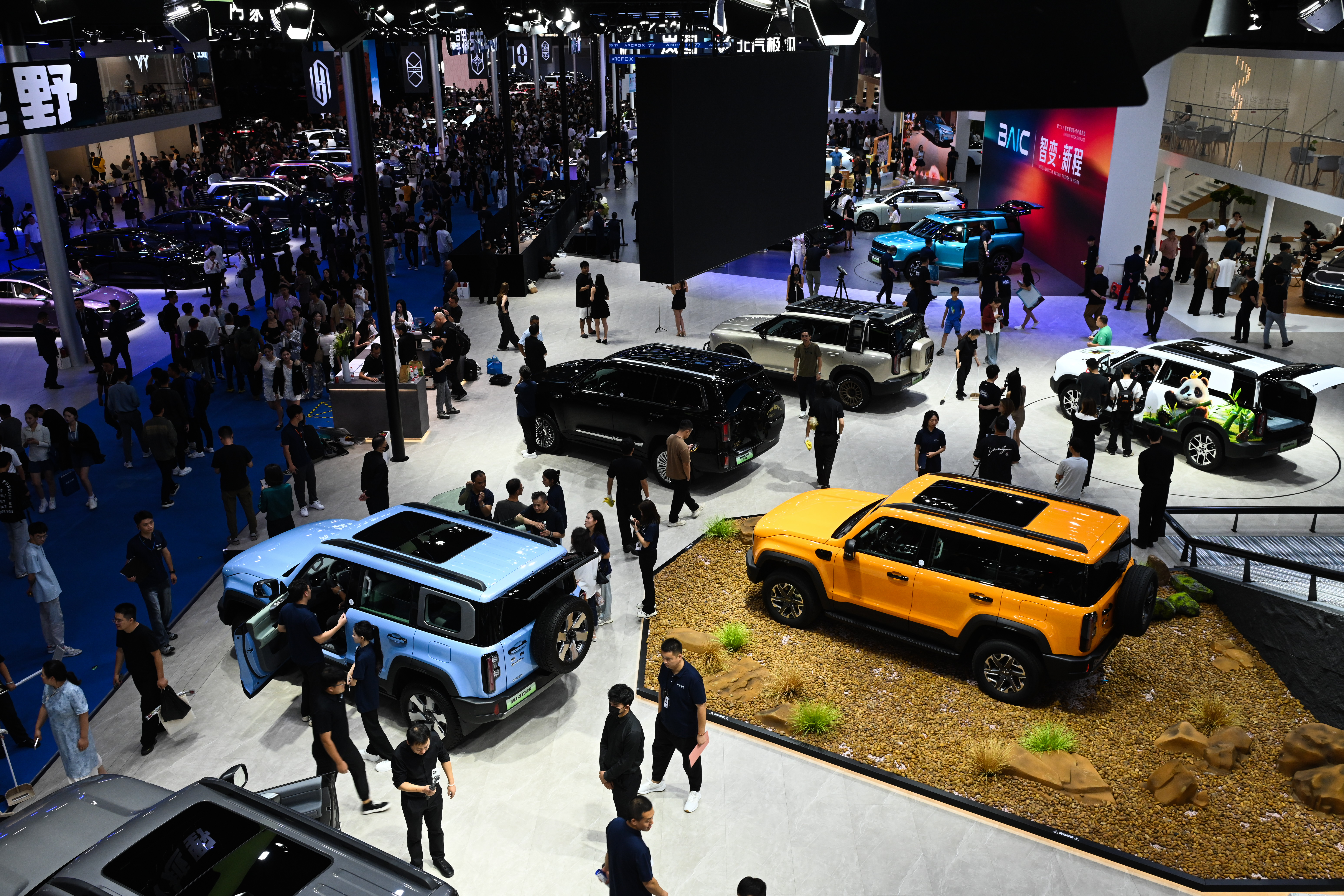 如比亚迪以“包馆”之势独占9号馆,以“兆瓦闪充”“天神之眼”智驾等自研科技打造沉浸式体验,室外街区更设置仰望U8应急浮水场景;奇瑞集团统领5号馆,携捷途纵横序列等新品首秀,以“智能皮卡生态”布局区域市场;长安系五大品牌汇聚10号馆,覆盖燃油、混动与纯电多元路线。长城、鸿蒙智行、吉利等亦扩馆扩容。