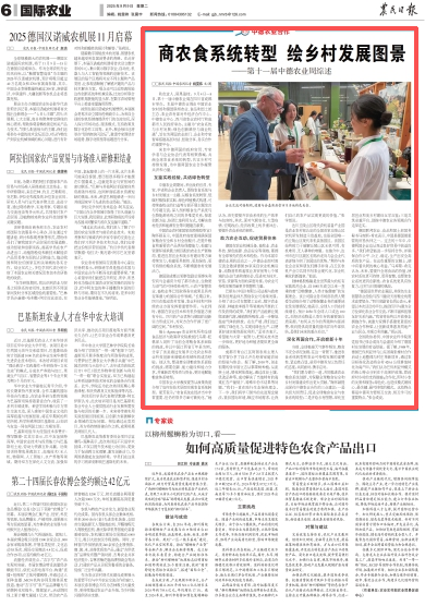 当前,全球极端天气事件频发,粮食不安全状况加剧,在这一背景下,推进农食系统转型和农业可持续发展的重要性、紧迫性凸显,亟须中德双方以负责任的态度,共同面对,携手应对。