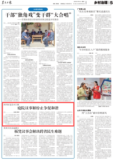 “多亏了村里的庭院议事会,我和邻居多年的宅基地纠纷终于解决了,实在是太感谢了。”近日,四川省广元市旺苍县木门镇石川村村民谭普益握着调解员的手感慨道。在木门镇,像这样通过庭院议事会化解的矛盾纠纷,仅2025年上半年就有10起。