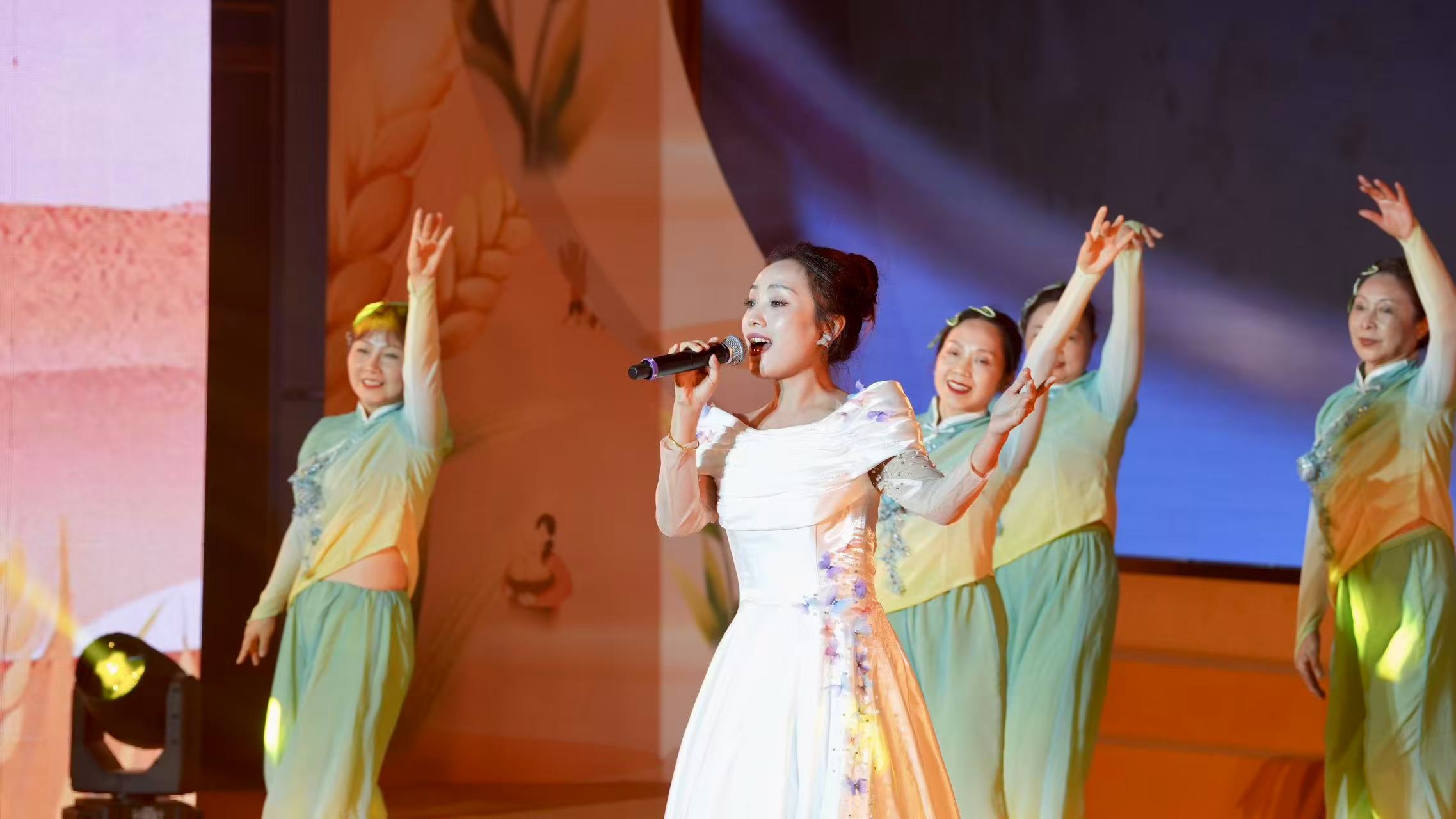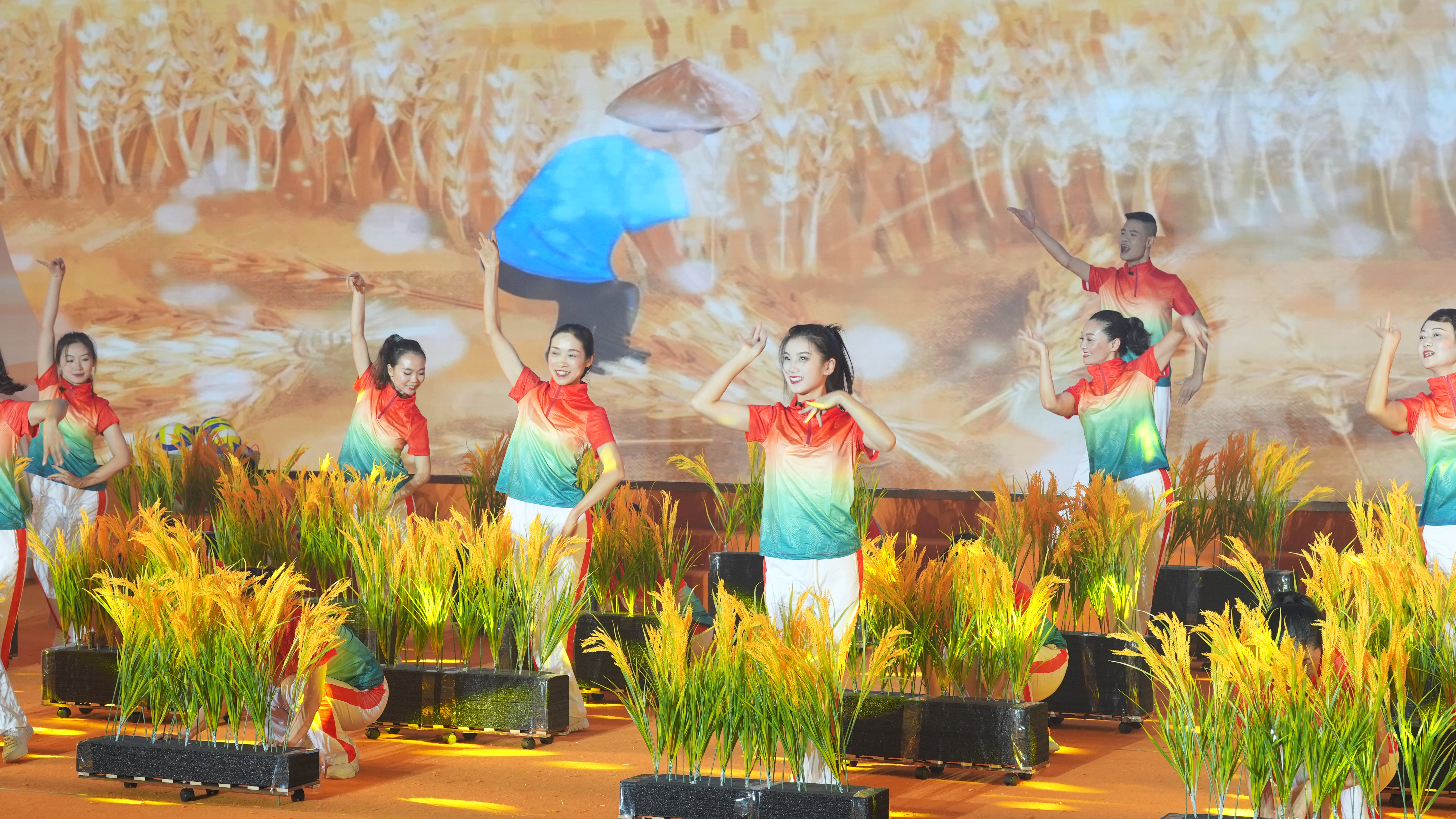 大赛在雁江区丰裕镇带来的舞蹈表演《田间欢歌》中拉开帷幕。随后,一个个精彩节目轮番上演。表演秀《蔬乡长河》中,农人以双手为笔,将平凡的蔬果编织成一方水土的文化符号,勾勒出绿色发展的美丽篇章;舞蹈《麦浪滚滚》生动展现了麦收时节的壮美景象,观众仿佛跟随舞者的脚步,亲身感受丰收的喜悦;舞蹈《一绿美桑都》以桑为媒、以蚕为笔,绘就了一幅“绿满乡村,美美与共”的绚丽画卷;情景舞蹈《村排进行曲》则以丰收的喜悦为旋律,舞出排球划出的优美弧线,展现了农闲时农民在球场上的休闲生活,洋溢着浓浓的乡村活力……