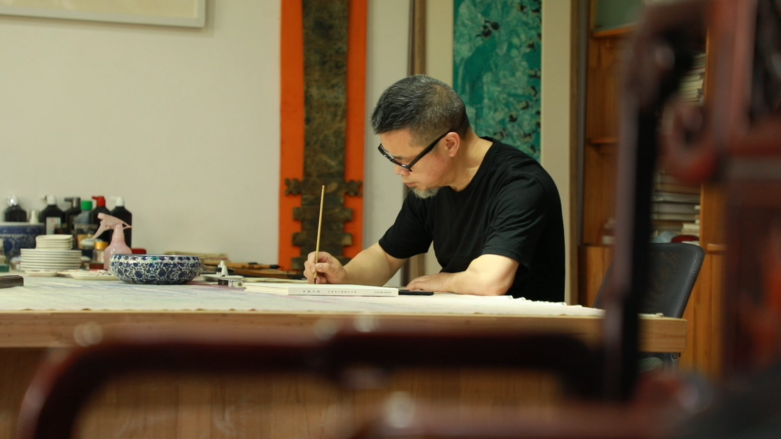 苏茂隆正在创作。全媒体记者 邹永森 摄