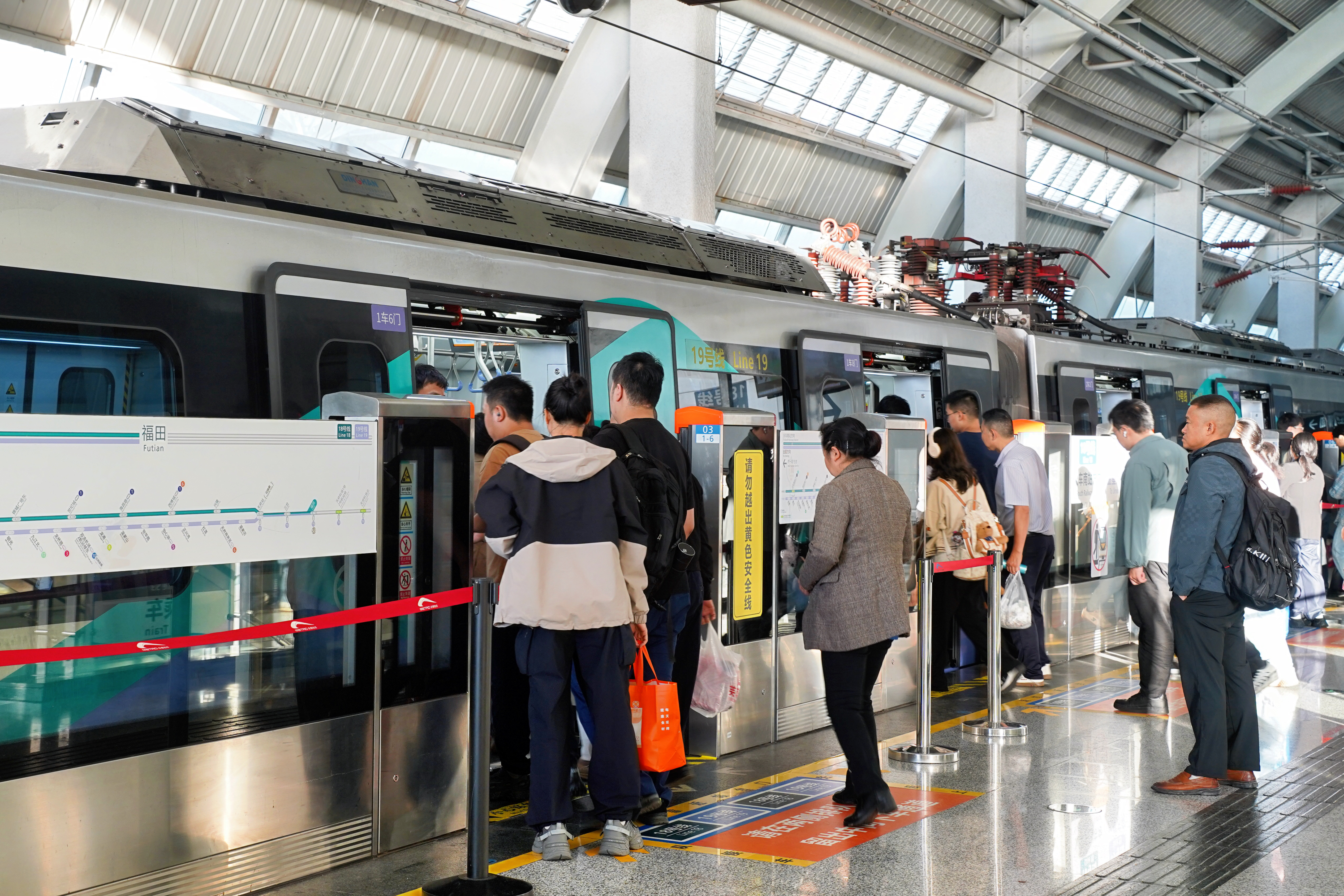 福田站内,乘客正在等待换乘。