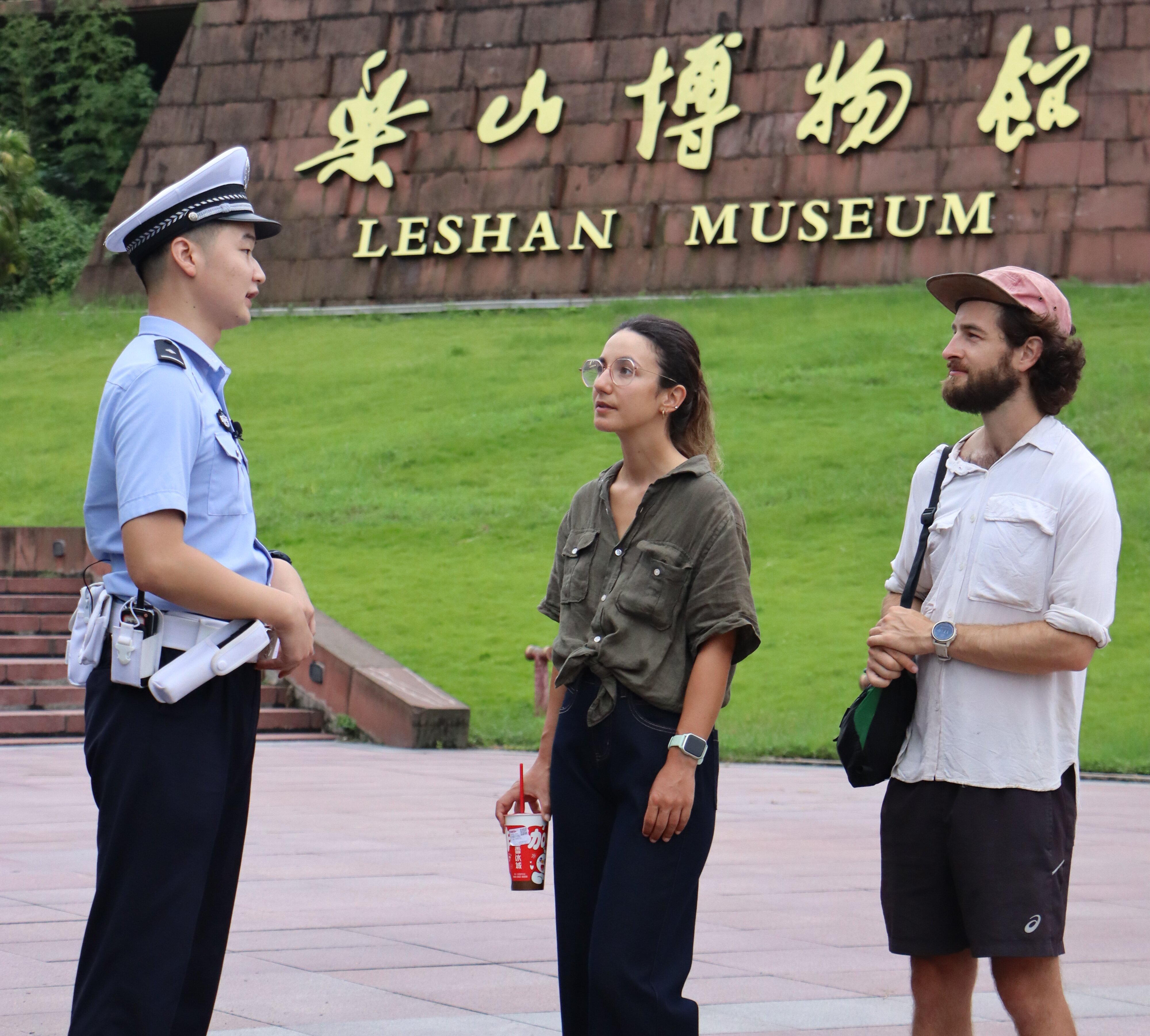 “每天来乐山大佛的外国游客非常多,为此我们就特别重视英语的学习和使用。”乐山市公安局交管支队大佛景区大队民警颜凯介绍,通过英语沟通,能更加精准地掌握游客的需求和困难,以此来为游客提供更好的指路指引等服务和帮助。
