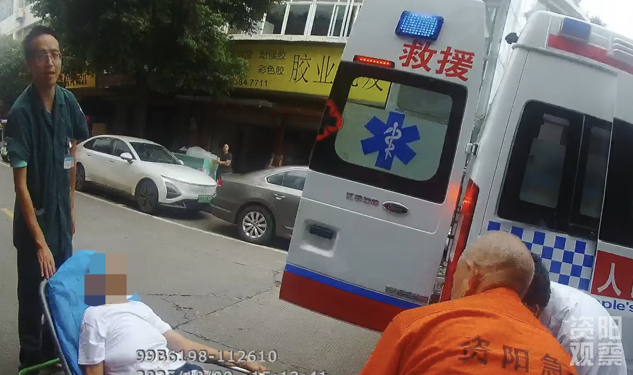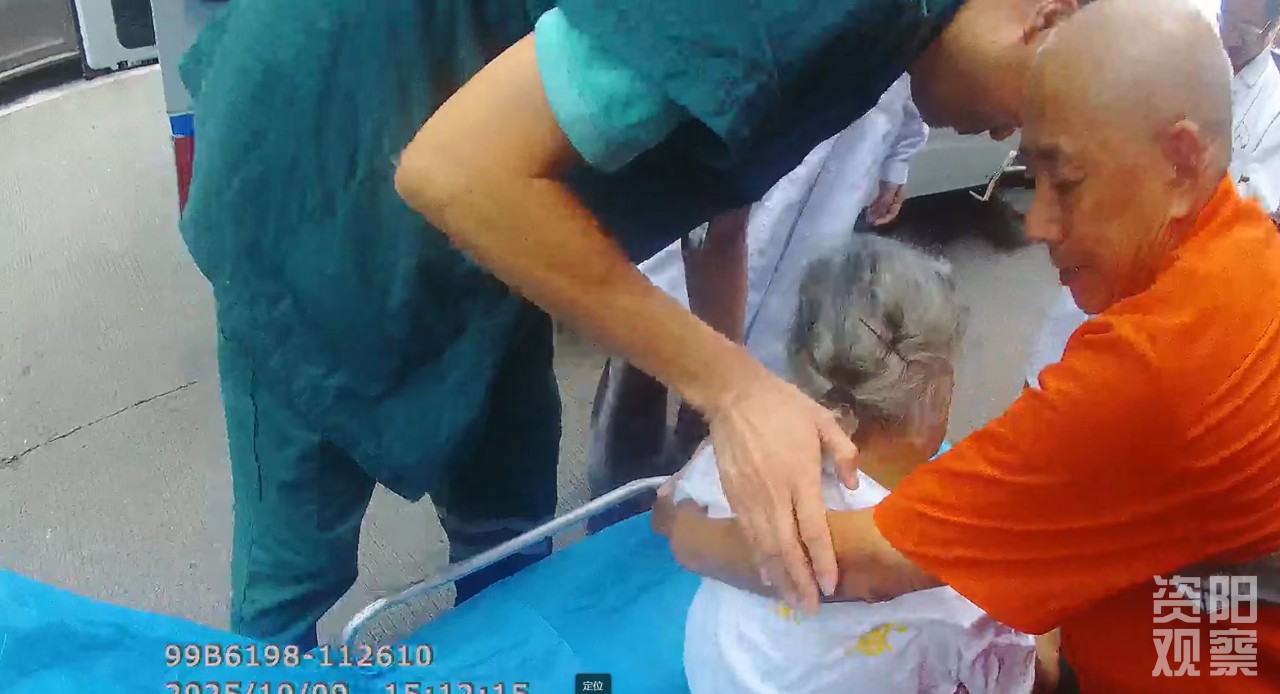 资阳市公安局雁江区分局三贤祠派出所民警很快赶到现场查看老人情况,发现她已无法独自行走,便会同随后赶到的120急救人员,将其送往资阳市人民医院,并通知了家属。