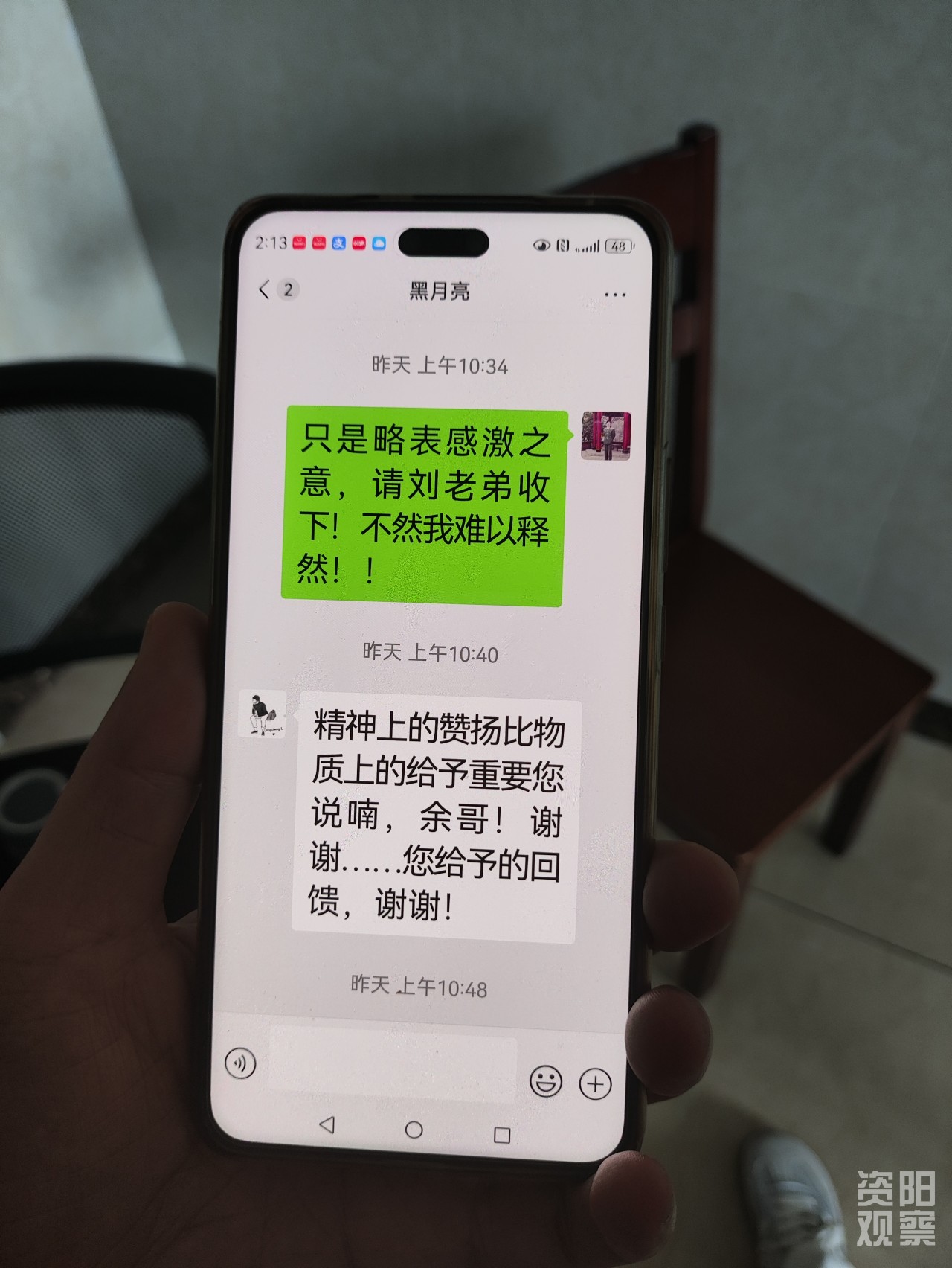 刘先生的这句“精神上的赞扬比物质上的给予重要”,不仅体现出质朴真诚的善意,也传递了文明资阳的温度与力量。越来越多像刘先生这样平凡而善良的人,用实际行动诠释着资阳这座城市的温情底色,让“凡人善举”成为资阳最亮的名片。