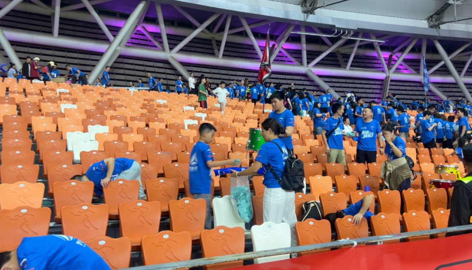 比赛结束后,令人动容的一幕在看台上上演:不少乐山球迷自发留在座位旁,弯腰捡拾散落的加油棒、零食包装袋等垃圾,原本热闹的看台很快恢复了整洁。而赛前,乐山公共交通有限公司还开通赛前免费摆渡公交,不少本地球迷主动选择公共交通,给外地球迷让路,赛后开通免费狂欢专线,让球迷直达乐山美食街区,尽享乐山美食。