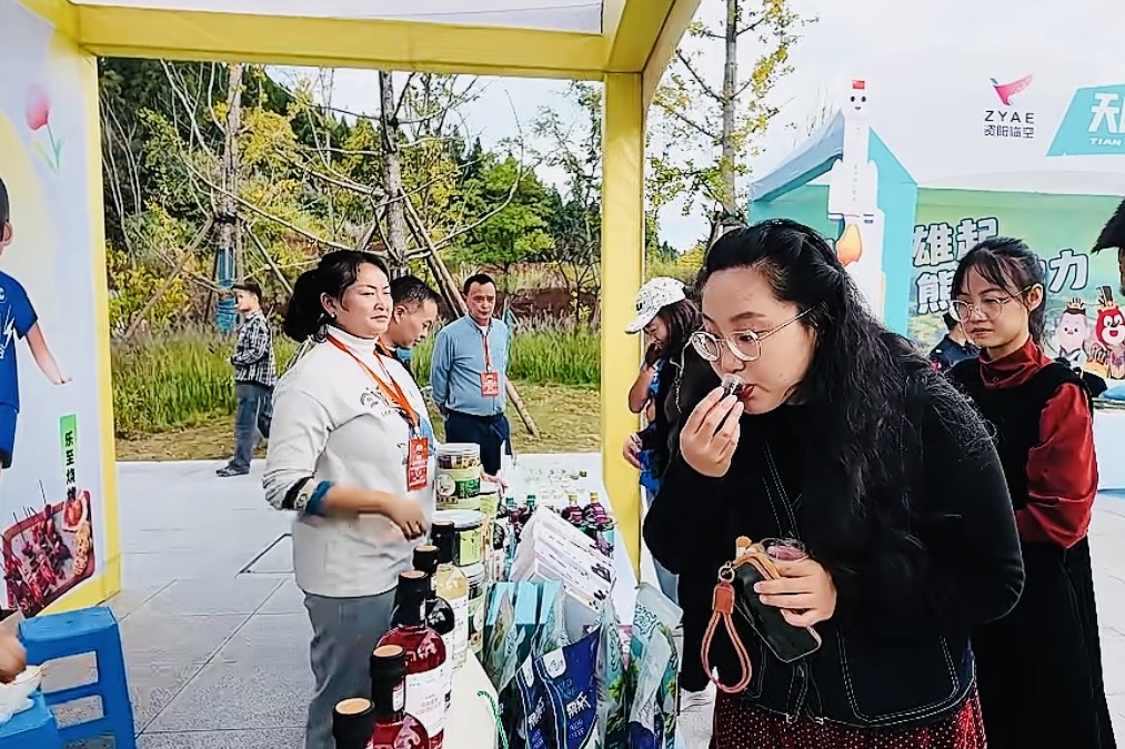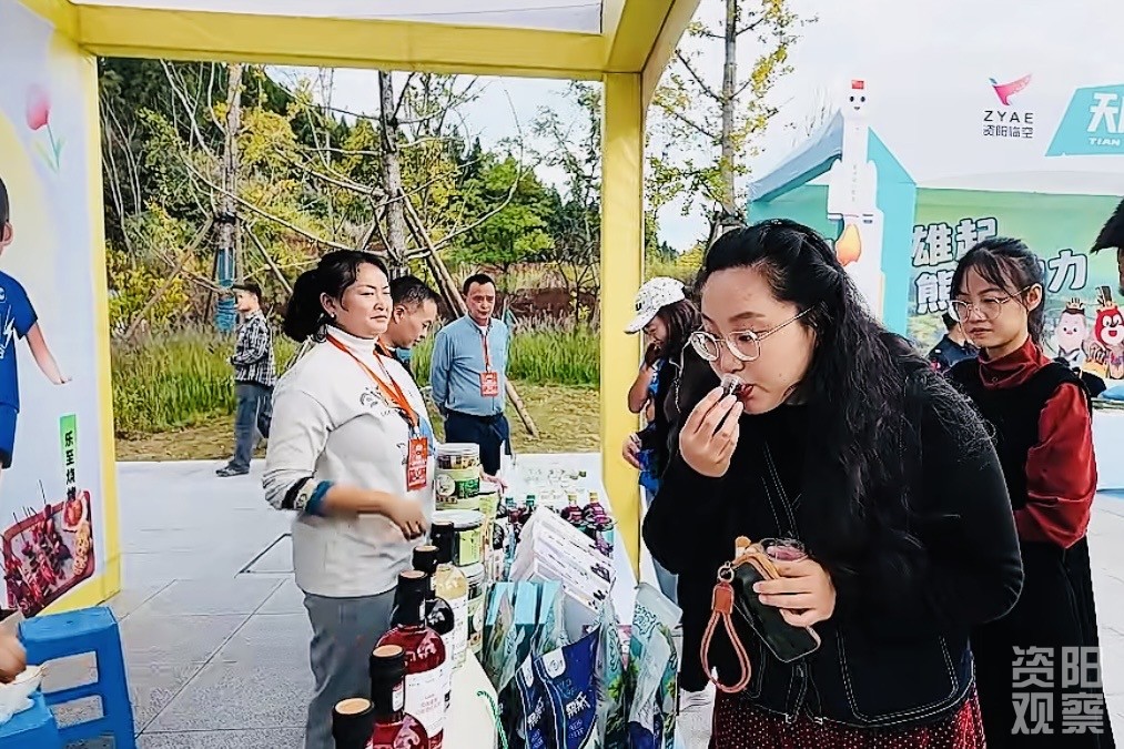球迷参观资阳特色好物展区。