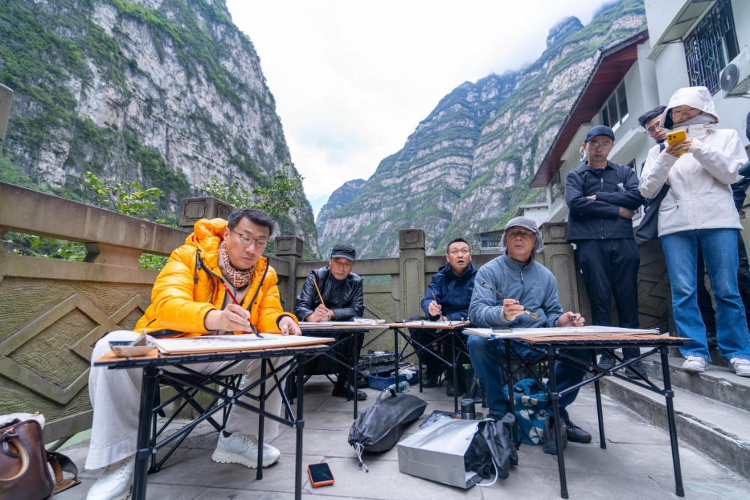 贾广健(中国美术家协会副主席):写生的意义远不止于完成一幅作品,它更是一次深入自然、体察人文的实践过程。走出画室,走进山川大地与百姓生活,我们得以在真实的环境中与土地对话、与人民交流,在沉浸式体验中激发灵感,提升艺术表达的深度与温度。每一次行走,都是对各地自然风貌与文化特质的系统认知。作为新时代的文艺工作者,我们的使命不仅是创作艺术精品,更要以画笔为媒,传播地域文化,展现生态之美。此次四川之行,让我在积累创作素材的同时,更加深刻地体会到艺术“从人民中来,到人民中去”的真正内涵。通过我们的作品,让更多人看见乐山的山水之美、人文之韵,进而走进四川,热爱这片充满生机与底蕴的土地,正是这次采风最深远的意义所在。