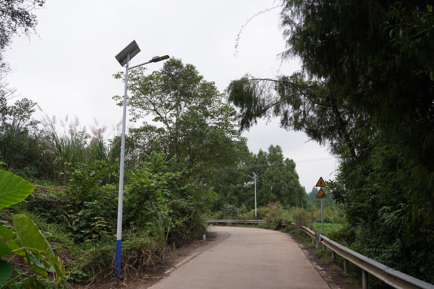 该镇六桥、翰林、桐子三个村(社区)的村级道路,弯道较多,夜行不便。该镇为解决这个问题,安装170盏太阳能路灯,按50米1盏布局,覆盖道路全长8.5公里。这些路灯投入使用后,改善了人居安全环境。
