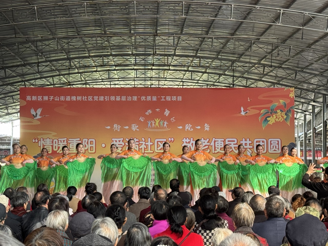 10月27日,资阳高新区狮子山街道槐树社区开展“情暖重阳·爱满社区”敬老活动,千余名辖区老年朋友与各界代表欢聚一堂,度过了一个幸福感满满的传统佳节。