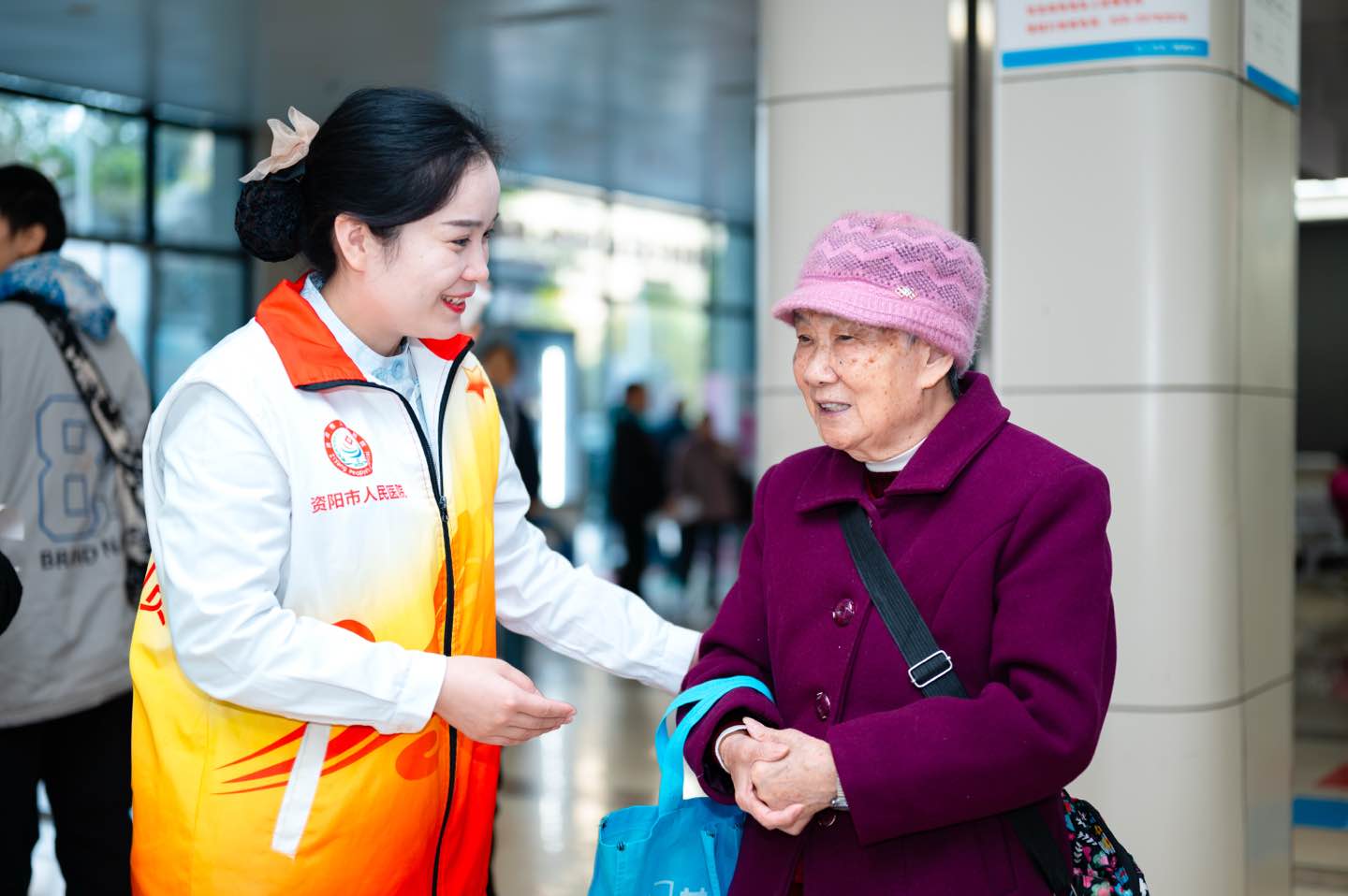 上午9点的资阳市人民医院门诊大厅,人流熙攘。78岁的李祖春老人独自走进大厅,一时间不知该去哪里挂号。就在她手足无措时,陪诊志愿者蒋松情主动迎了上来:“婆婆,有啥子需要我帮助不?”耐心听完老人的诉求后,蒋松情一边引导老人到自助挂号机前熟练操作,一边轻声解释。得知老人独自就医,蒋松情又主动提出全程陪同。“现在有了陪诊服务,帮了我们这些老年人大忙!”李祖春难掩激动。