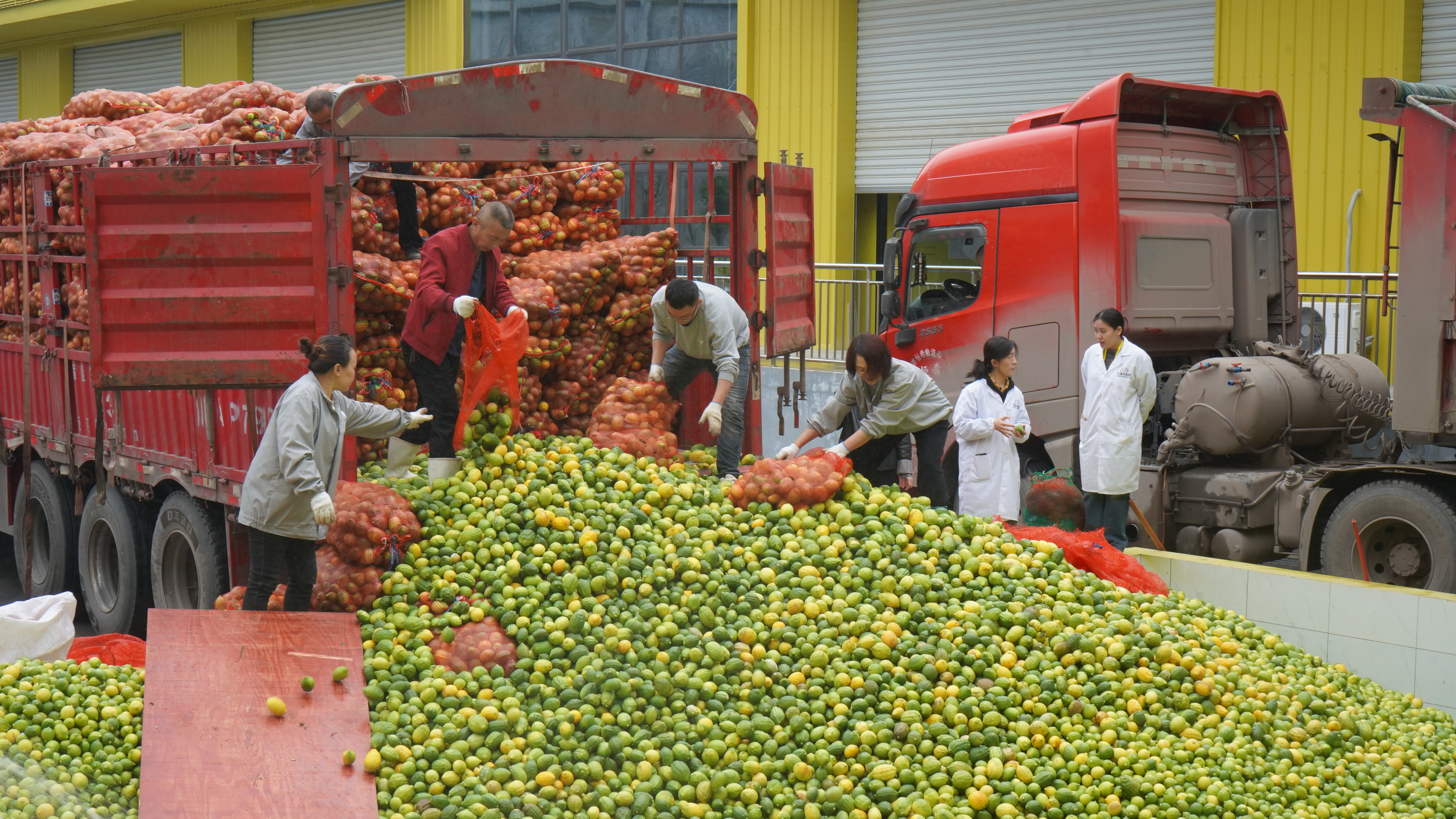 将柠檬卸车。