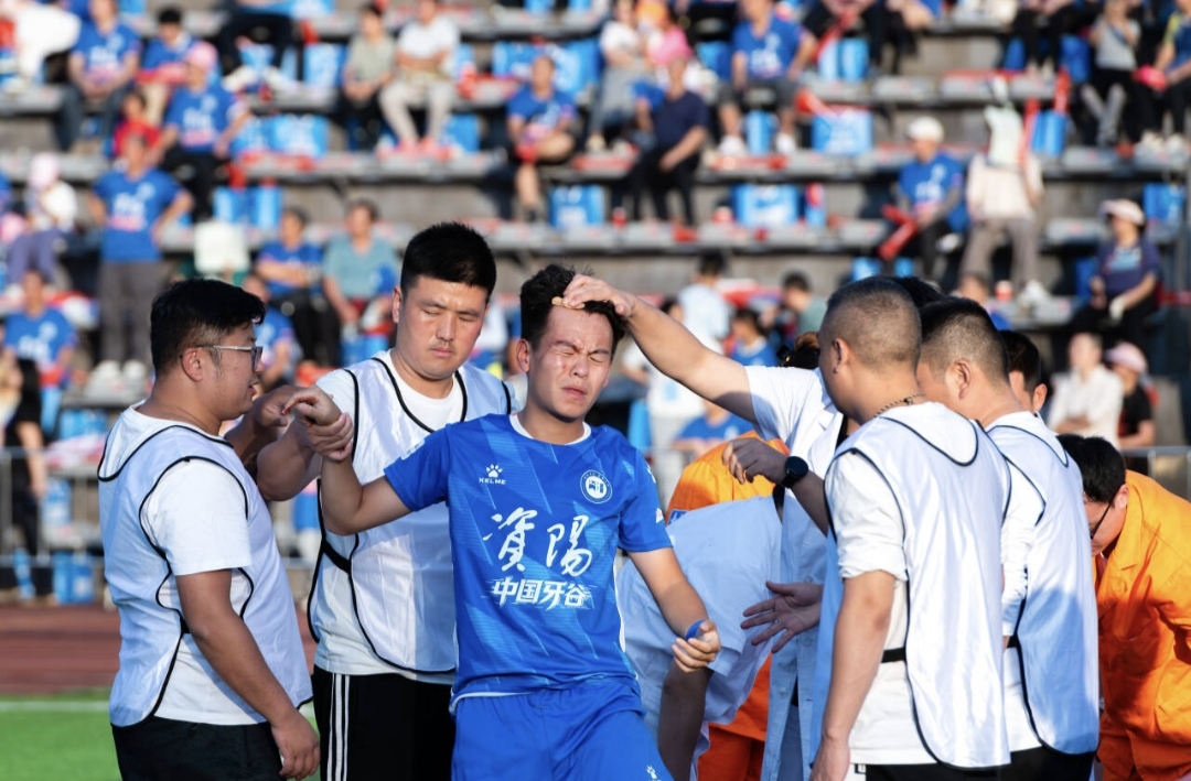 这份热爱,同样藏在肖逸飞拼抢后渗血的额头里,藏在门将甘羽飞身扑球的果敢里,藏在李鹏程顶着绷带上场的坚持里,藏在45岁的王雷奋力奔跑的身影里,也藏在张野流着鼻血仍追逐足球的执着里……