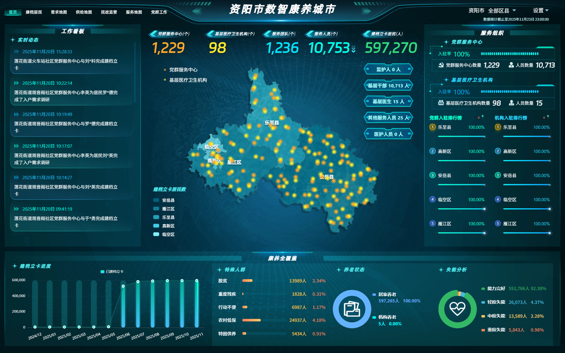 今年4月起,资阳所有养老类政府基础公共服务采购项目全面接入数智康养平台,通过建立市、县(区)、镇(街道)、村(社区)四级管理体系,依托大数据分析精准掌握不同老年群体分布特征,实现养老政策、资金和项目的精准投放与全程监督。