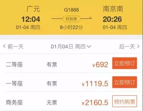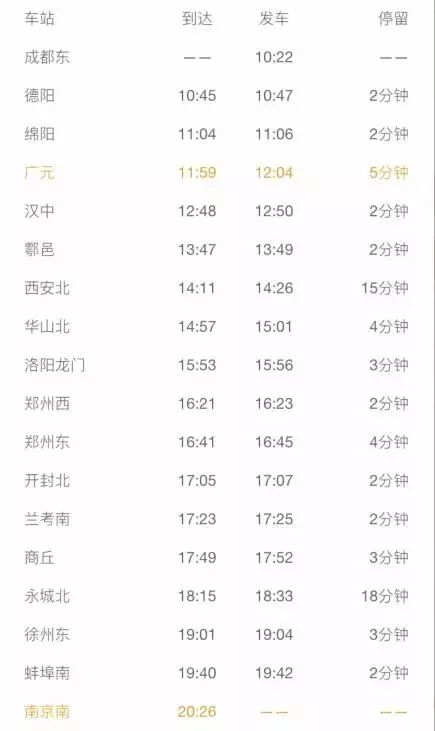 广元到南京南站耗时只需8个多小时!