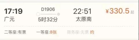 而且二等座只需要330.5元
