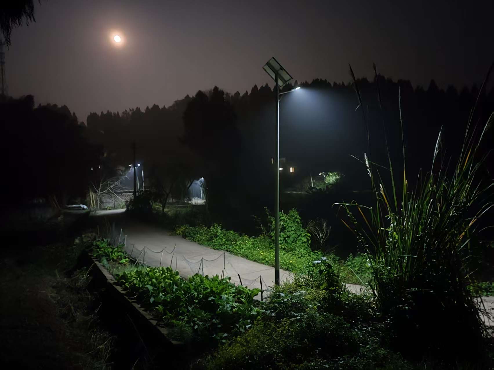 在天林镇高峰社区居民们用积分换来的太阳能路灯。
