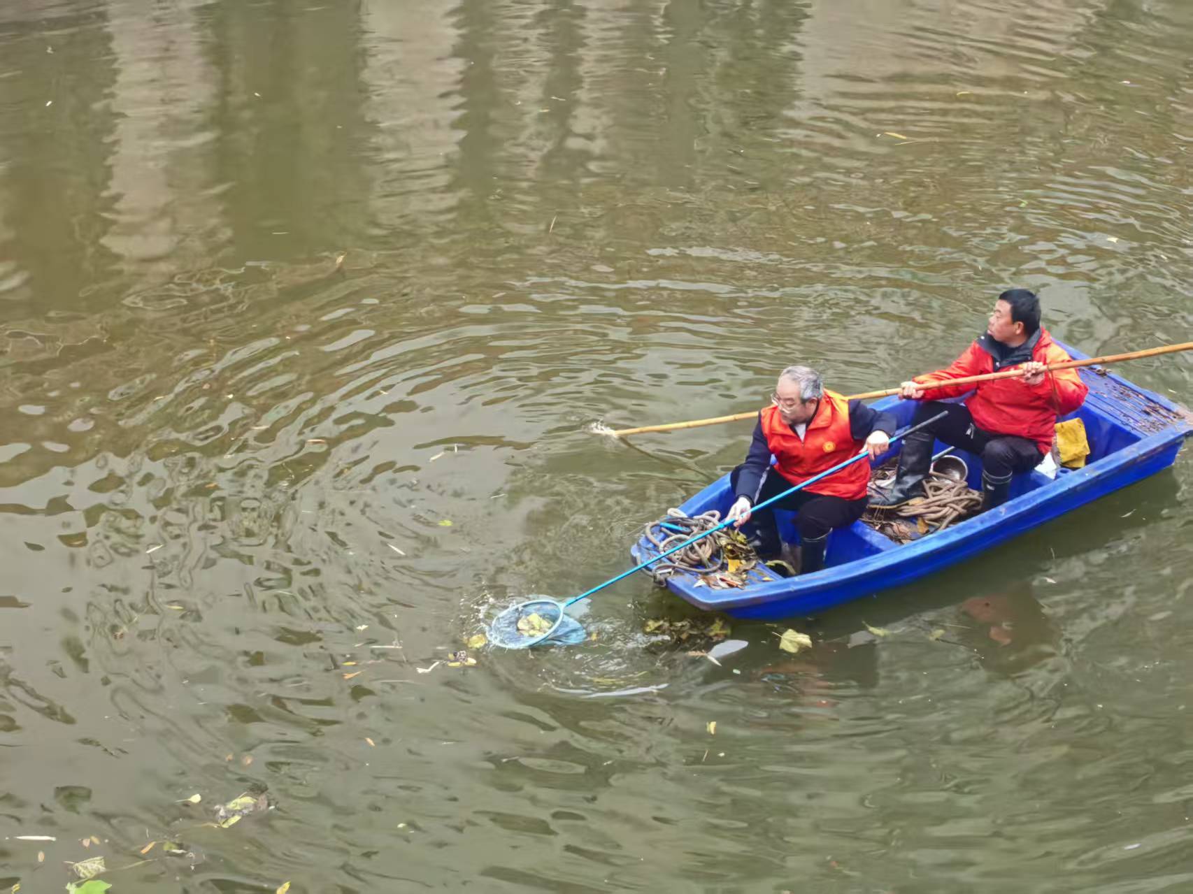 高峰社区居民清理河道挣积分。