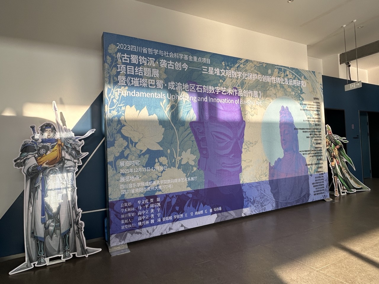 作为川音美院数码媒体艺术系的年度重磅大展,本次展览将持续至12月30日。展览打破单一主题局限,整合三大子项目集中呈现──2023四川省哲学与社会科学基金重点项目《古蜀钩沉・袭古创今──三星堆文明数字化保护与创新性转化及运用研究项目结题展》、2025四川艺术基金项目《美石美刻・成渝地区石刻数字艺术作品创作展》、川音美院数码媒体艺术系2023级硕士毕业研究生《梦回古蜀・青铜新语──三星堆主题数字艺术作品展》,为观众呈现一场融合古蜀文明与数字技术的艺术盛宴。