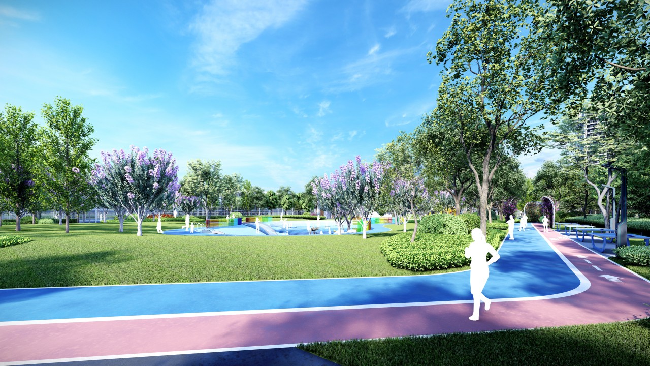 作为高新区“商旅文体康”融合发展的重要载体,公园选址大千路南沿线与城南大道交会处,以“全时活力、全龄友好”为核心理念规划建设。项目绿化率高达70.17%,将生态绿景与运动功能深度融合,规划建设8个5人制足球场、10个标准篮球场、13个乒乓球场、10个羽毛球场、6个标准网球场及1个多功能运动场地,搭配2公里健身步道、1000平方米健身广场和1260.94平方米儿童活动区,全方位覆盖不同年龄段市民的运动休闲需求。同时配套建设4000平方米生态停车场,可满足百辆机动车及近两百辆非机动车停放,让市民出行健身更便捷。