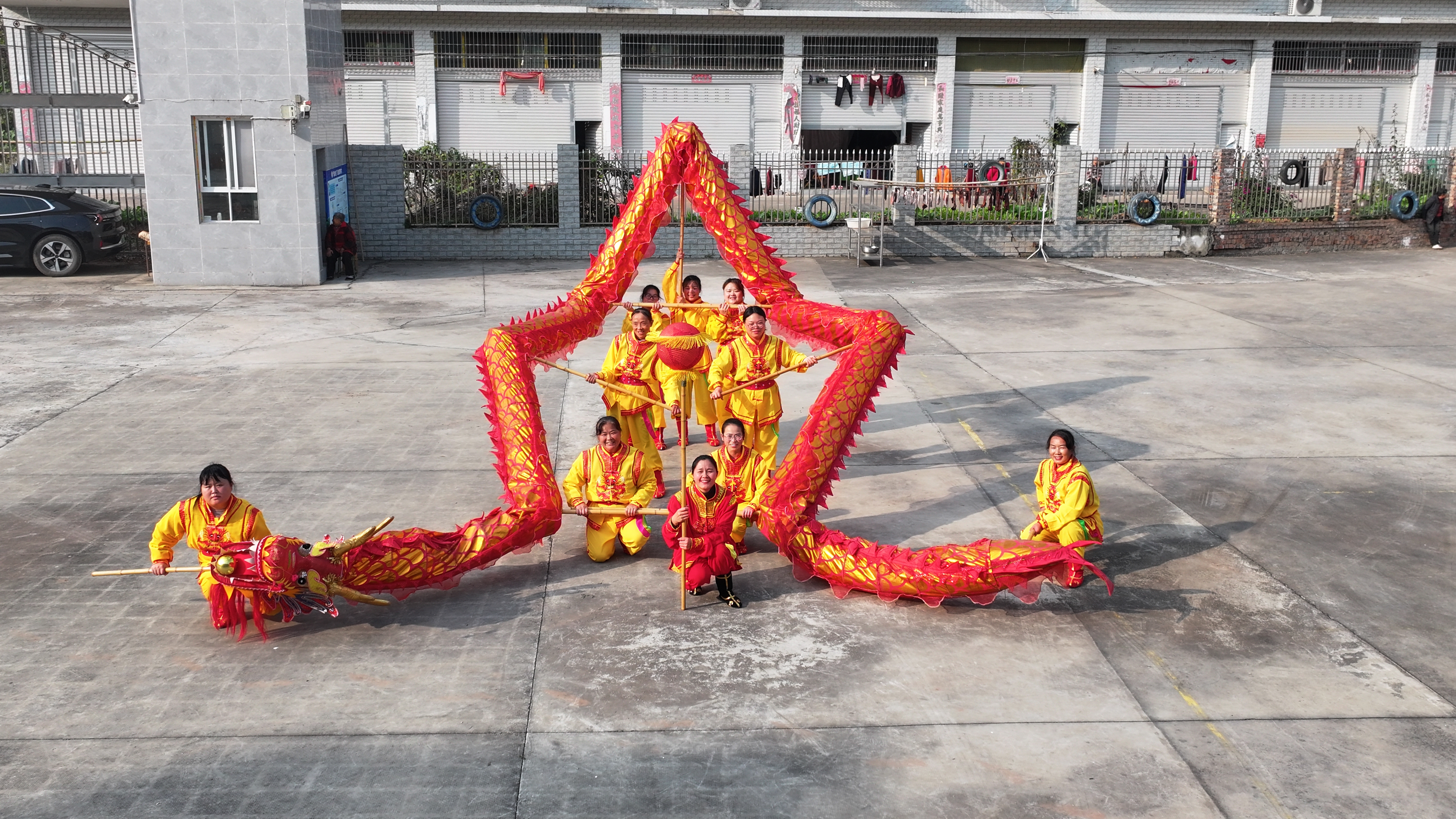 舞龙队日常训练场景。