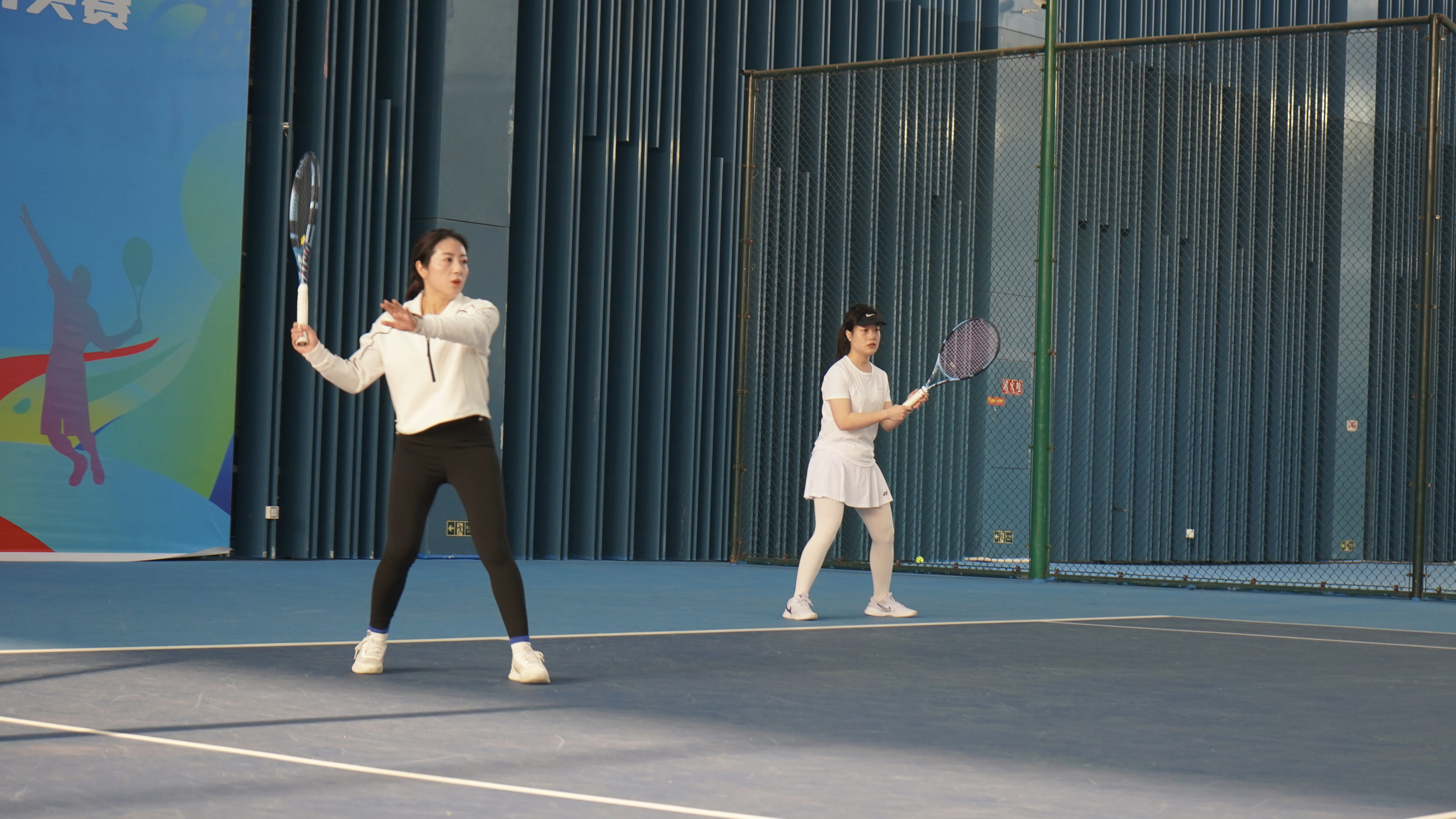 市民在网球训练基地打球。
