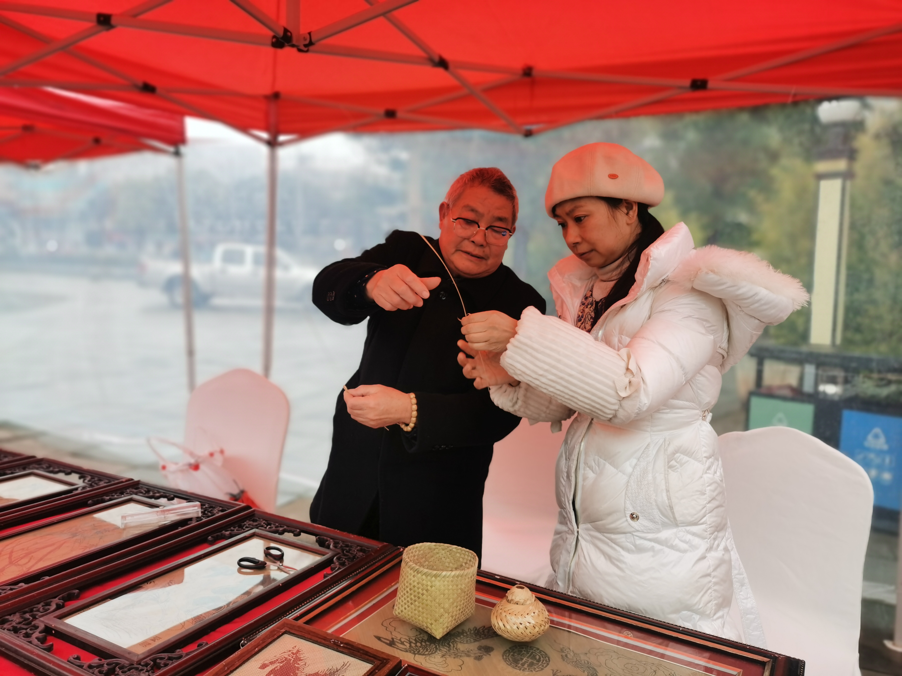 非遗竹编体验。