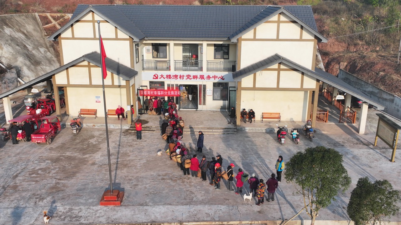 超市货架上,大米、面条、电热毯等物品摆放整齐,明码标“分”。村民们有序排队,凭分兑换,笑声让冬日院坝暖意融融。这一幕,正是大楼湾村推行“幸福基金+积分激励”机制的工作缩影。