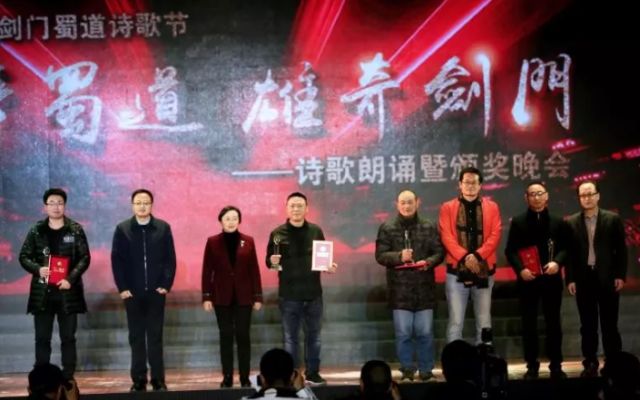 在8日晚举行的第二届中国剑门蜀道诗歌节“千年蜀道雄奇剑门”诗歌朗诵暨颁奖晚会上,与会领导嘉宾为第六届剑门关文学奖和“千年蜀道雄奇剑门”诗歌大赛获奖者颁奖。剑阁县被授予“中国作家剑门关创作基地”。晚会分“问蜀道”“走雄关”“赞盛世”三个篇章进行。