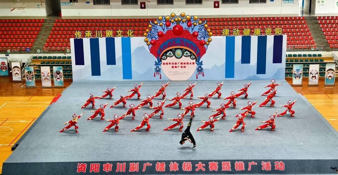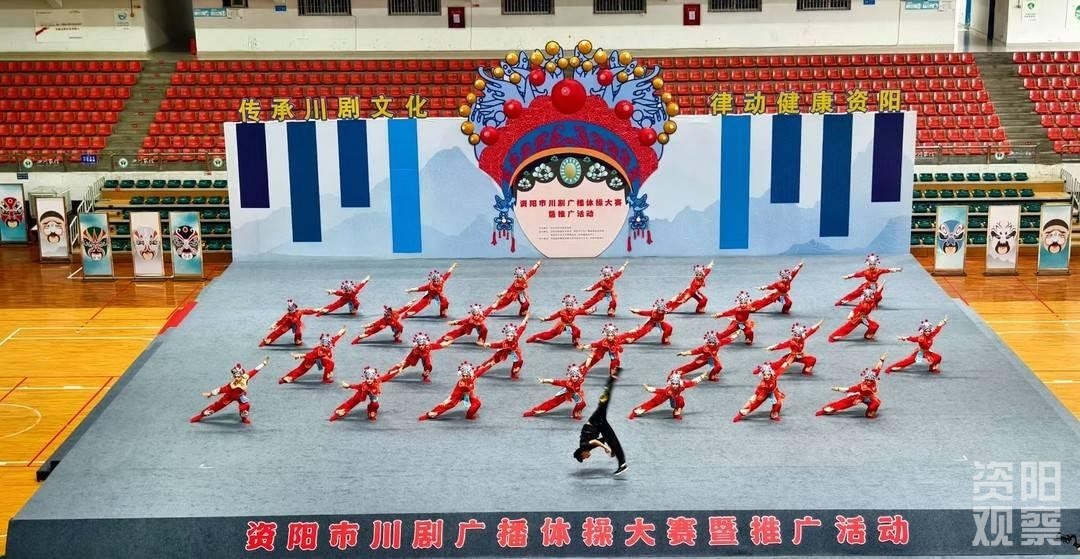 更具创新性的场景,出现在资阳市川剧广播体操大赛暨推广活动的超“燃”现场。程式化的川剧身段与大众广播体操完美融合。赛场上,参赛者们云手转身、踢腿亮相,一招一式间,百年非遗的韵味随着律动的节拍“活”了过来。